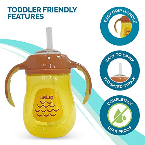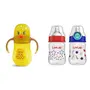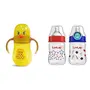 LuvLap Naughty Duck Sipper / Sippy Cup 280ml Anti-Spill Design with Soft Silicone Straw 12m+ (Yellow)LuvLap naughty duck straw sipper comes with a spill proof weighted straw. Weighted straw allows child to drink at any angle easily. Ergonomically designed easy grip handles are specially designed as per requirement of small baby hands.Luvlap Wide Neck Natura Flo Baby Feeding Bottle 150ml Pack of 2 Floral & StarsLuvLap Natura Flow Feeding Bottles are ergonomically designed to be easily held while feeding the baby. All LuvLap bottles are 100% BPA free and fully sterilizable. The teats are 100% Liquid Silicone and have an anti-colic valve that vents air into the bottle preventing any air from entering the babys tummy. The teat has grooves at the tip which encourage peristaltic suckling while the wide base helps the baby get a natural latch similar to that on the mothers breast. This helps easy transition between breastfeeding & bottle feeding. The grooved teats and superior silicone quality ensure no nipple collapse helping in an uninterrupted feed.