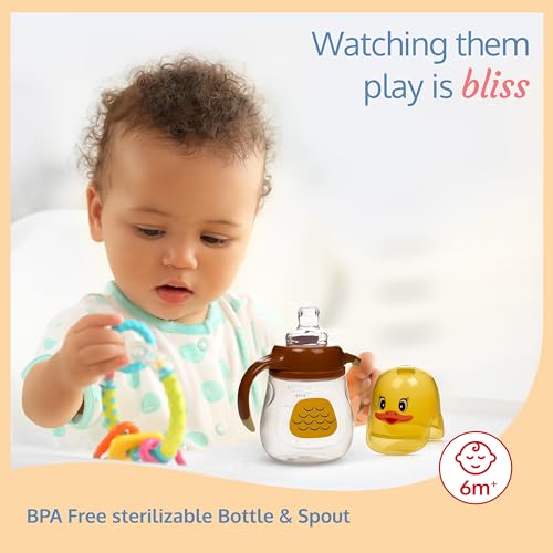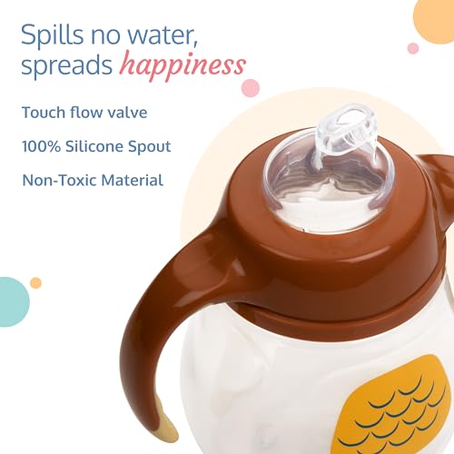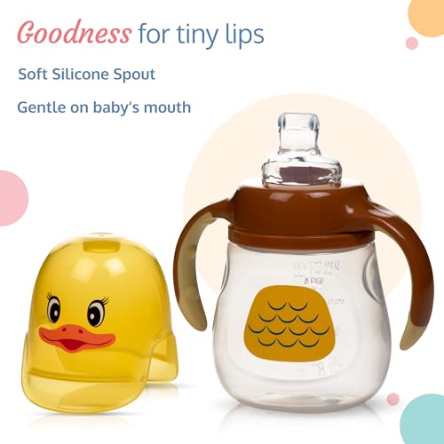 LuvLap soft silicone spout sippers are ergonomically designed for a better grip. Soft silicone spout is gentle on babys teeth. Touch flow valve makes the sipper spill free and EN ables baby led drinking.