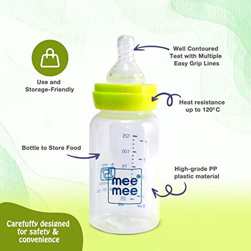 Mee Mee 125Ml 2 In 1 Baby Feeding Bottle With Spoon (Green)
