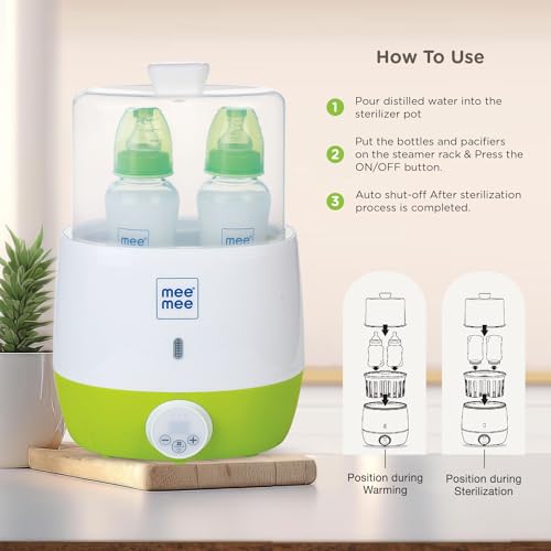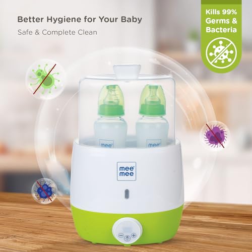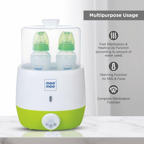 Your baby immunity is still developing and needs all the protection it can get. The first few months are critical in keeping everything that comes in contact with your baby germ-free. Sterilisation is the best way to protect your baby health from risks of infection. Mee Mee Advanced Digital 3 in 1 Steam Steriliser & Bottle Warmer is here to help you sanitise your baby bottles and accessories in a quick and natural manner without any chemicals. Advanced Digital Touch Knob makes it easier fo you to set the time of sterilization as per your convenience. It ensures that what helps feed your tiny tot is rendered completely germ-free. With an all-encompassing design that can fit in all types of bottles and accessories this steriliser is lightweight compact and easily portable. The digital display makes it easy to use by you even At Night when your baby is fast asleep.