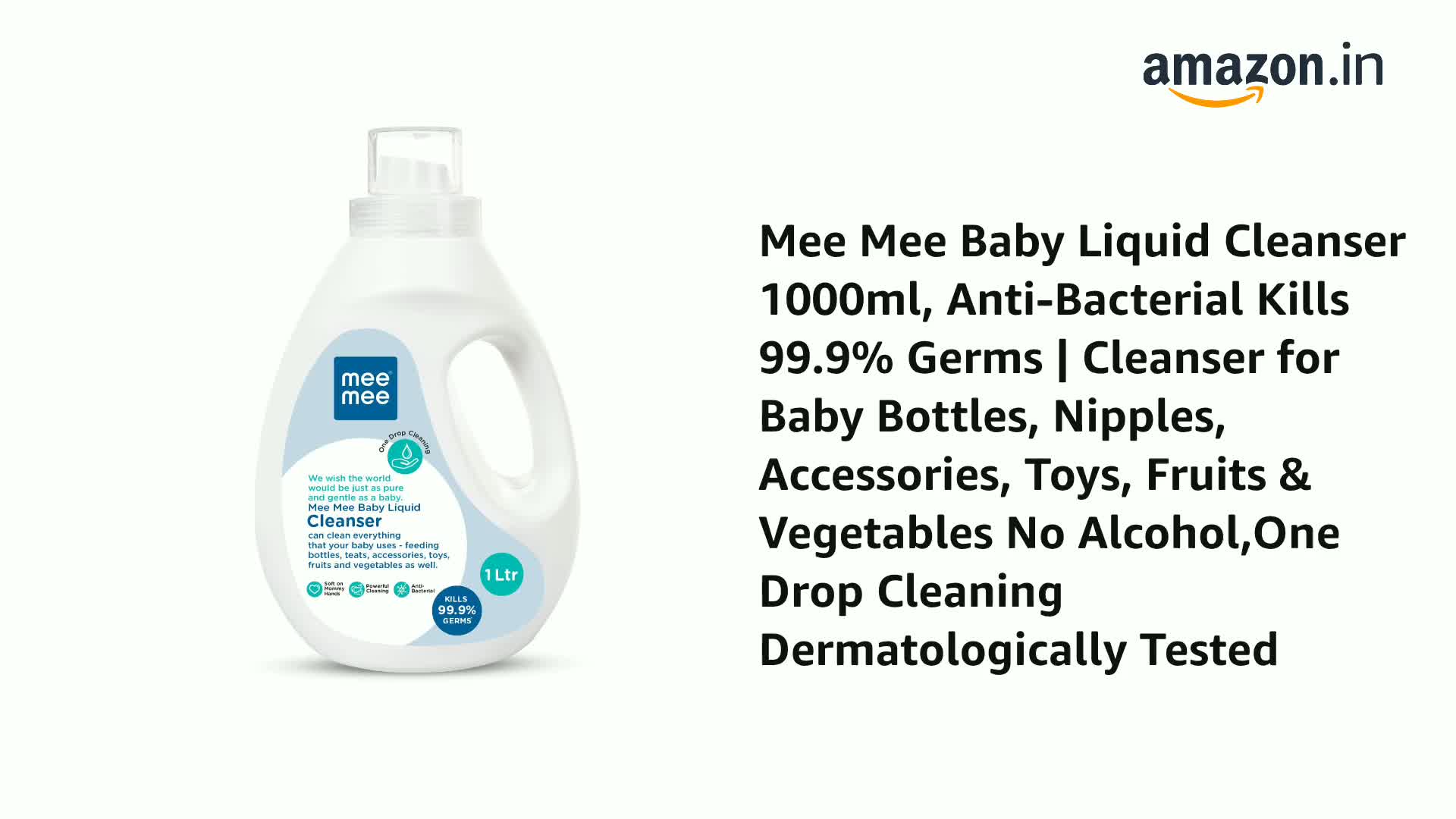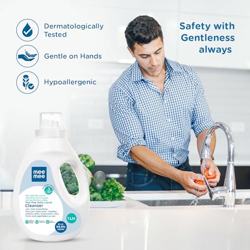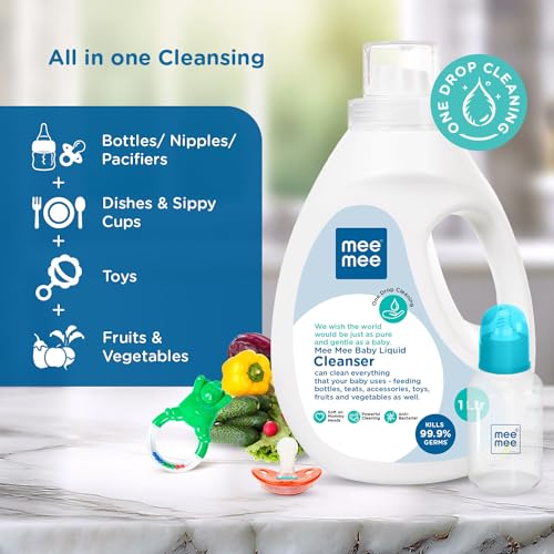 Mee Mee Baby Liquid Cleanser 1000ml, Anti-Bacterial Kills 99.9% Germs | Cleanser for Baby Bottles, Nipples, Accessories, Toys, Fruits & Vegetables No Alcohol,One Drop Cleaning Dermatologically Tested