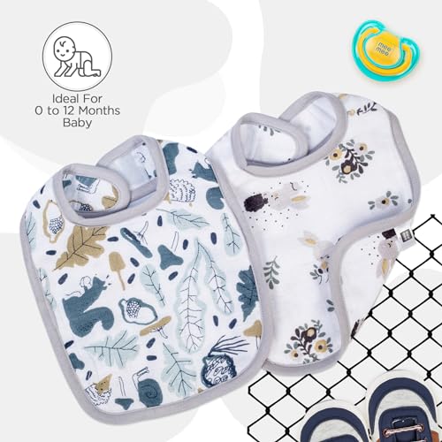 Mealtimes mean new tastes textures and sometimes a good amount of mess. Mee Mee Soft Cotton Bibs are perfect for keeping your baby dry and their clothes clean while they eat drink or drool. Made of soft and absorbent fabric these bibs are available in different colours and designs and are easy to put on and take off. All Mee Mee baby bibs are carefully made from cotton and other best quality fibre's suitable for new born babies made from high quality and safe materials completely safe for use soft knit bibs with waterproof backing.