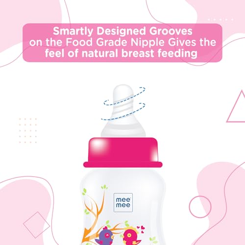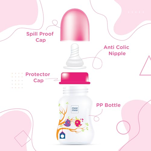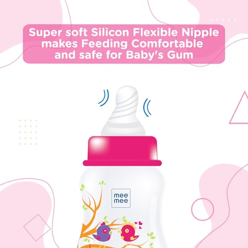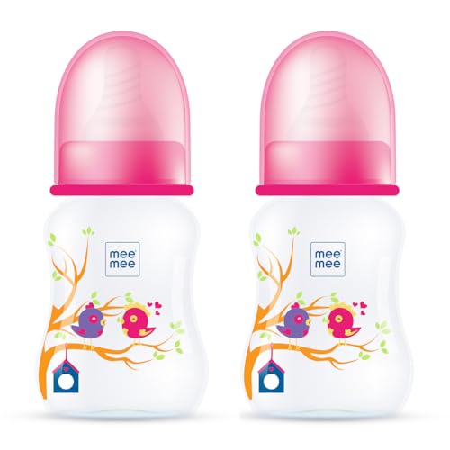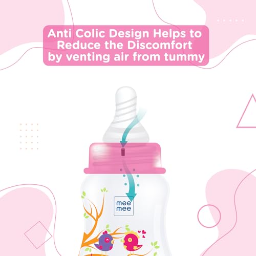 HomeBabyFeedingFeeding AccessoriesMee Mee Baby Feeding Bottle 125ml |BPA-Free Baby Milk Bottle with Eazy Flo Technology, Anti-Colic Valve, Non Toxic and Ergonomic Design for New Born/Infants/Toddler Upto 3 Years (Pink, Pack of 2)