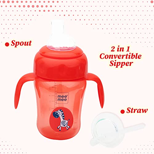 Making the transition from feeding bottle to spout cup to straw sipping is an important one Mee Mee's 2-in-1 silicone training cup is designed to help your child gradually transit from feeding bottle too drinking thick liquids from spout cups to straw sippers and enjoy all kinds of liquids with more ease.