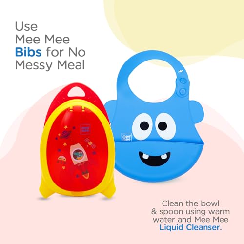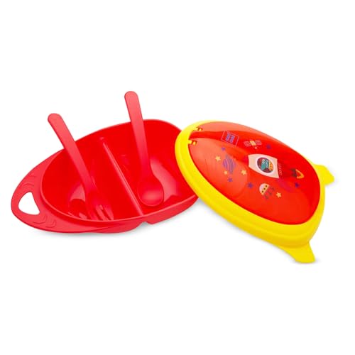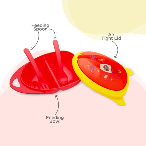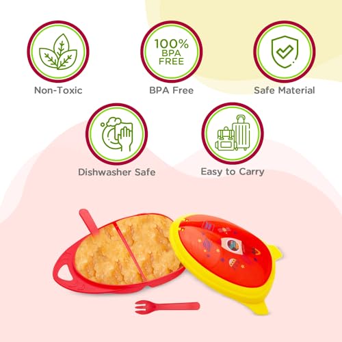 Mee Mee BPA Free Air-Tight Feeding Bowl with Fork & Spoon for 6 Month+ Babies, Easy to Carry (Red)