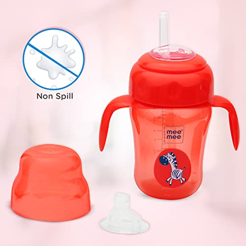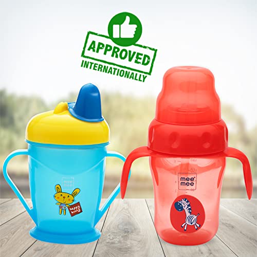 Mee Mee Easy Grip Sipper Cup with Twin Handle (180 ml, Blue) and 2 in 1 Spout and Straw Sipper Cup (210ml, Red)
