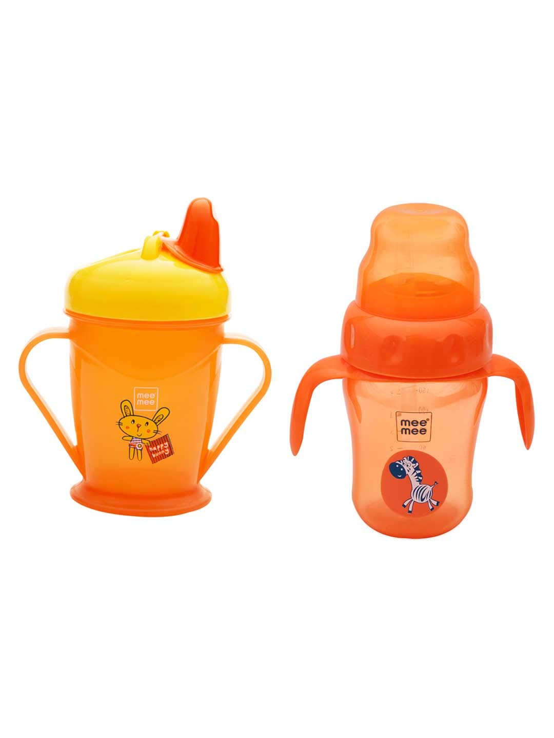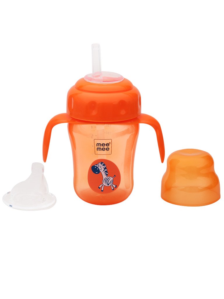 Mee Mee Easy Grip Sipper Cup with Twin Handle (Pack of 2 - (180ml) + (210ml)- Orange)