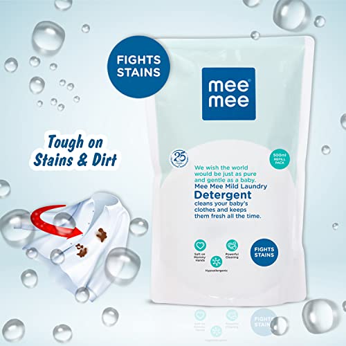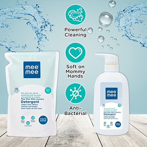 Mee Mee Mild Baby Liquid Laundry Detergent Bottle (500ml) with Refill Pack (500ml) Combo(Pack of Two)