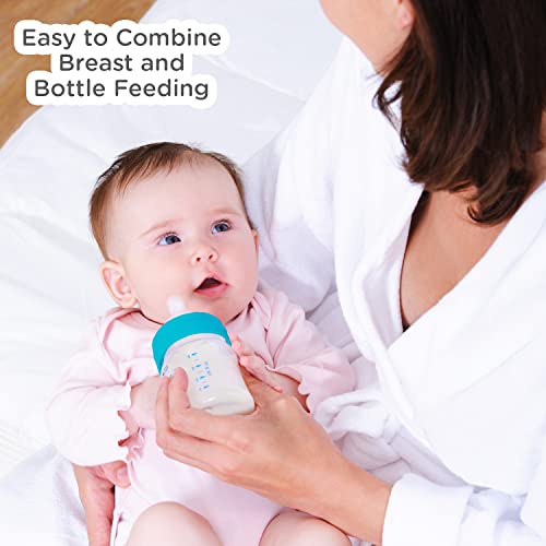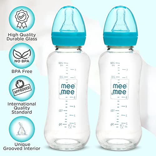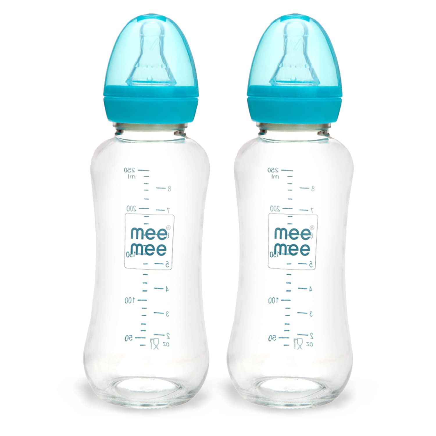 Mee Mee Premium Glass Feeding Bottle with Eazy-Flow Technology, Anti-Colic Valve,Anti Slip,BPA-Free Baby Feeding Bottle for Babies & Toddlers(Blue, 240Ml,Pack of 2)