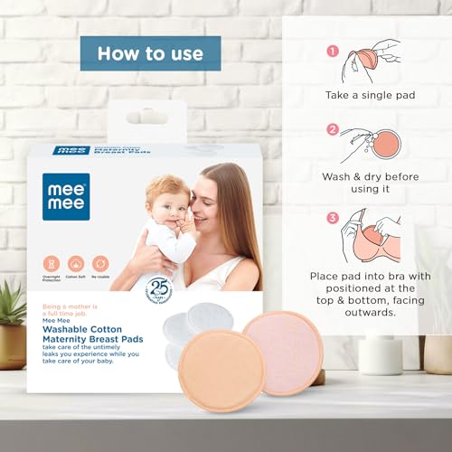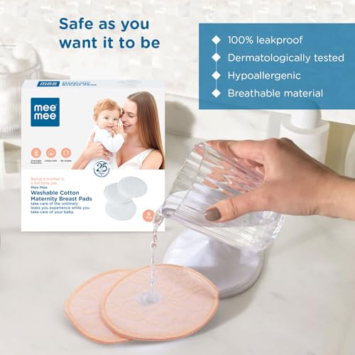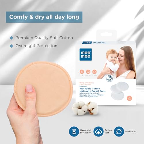 Mee Mee Reusable Cotton Maternity Breast Pads for Feeding Mothers 6 PCS | Washable Absorbing Nursing Pads, Leak Proof | Anti-Bacterial Dermatologically Tested, Bamboo Rayon Pads (100 Washes, Cream)