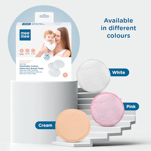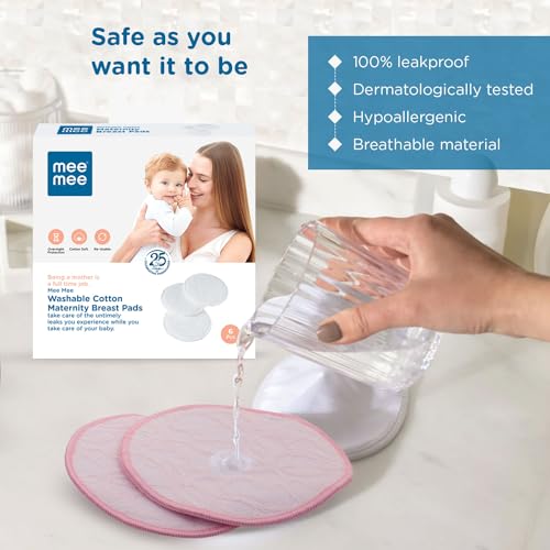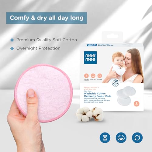 Mee Mee Reusable Cotton Maternity Breast Pads for Feeding Mothers 6 Pcs | Washable Absorbing Nursing Pads, Leak Proof | Anti-Bacterial Dermatologically Tested, Bamboo Rayon Pads (100 Washes, Pink)