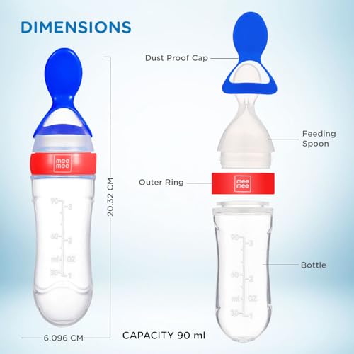 Made from 100% food grade BPA free liquid silicone for ensured safety and hygiene. can be used for feeding baby juices cereal mashed rice and vegetables and all kinds of pulpy semi- solid foods. Bottle is durable and easy to squeeze even by the baby allowing self-feeding The feeder comes with a protective cover to shield it from harmful germs and other external conditions Easy to assemble use and sterilize.