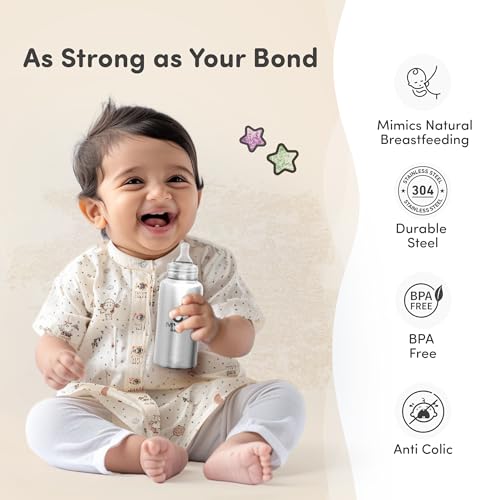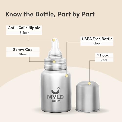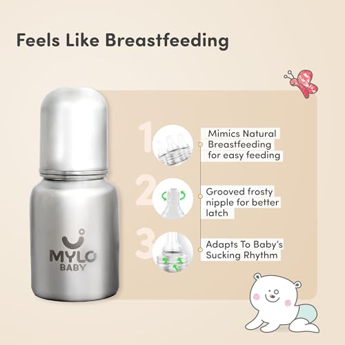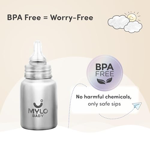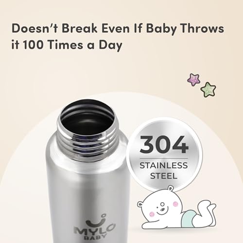 When it comes to choosing a baby feeding bottle parents want nothing but the best & they don't wish to compromise on the health of their munchkin. Presenting Mylo Baby Stainless Steel Feeding Bottles that are made with BPA Free 100% Food grade material. These baby steel feeding bottles are made with durable 304 stainless steel that is sturdy and won't break even if your baby throws it throughout the day. Our anti-colic steel feeding bottles are designed to reduce colic gas and reflux in babies. It mimics the mother's breast to make the transition from breast to bottle smoother. These stainless steel feeding bottles are absolutely safe for your baby as they are non toxic rust free and plastic free. They are easy to clean and carry.