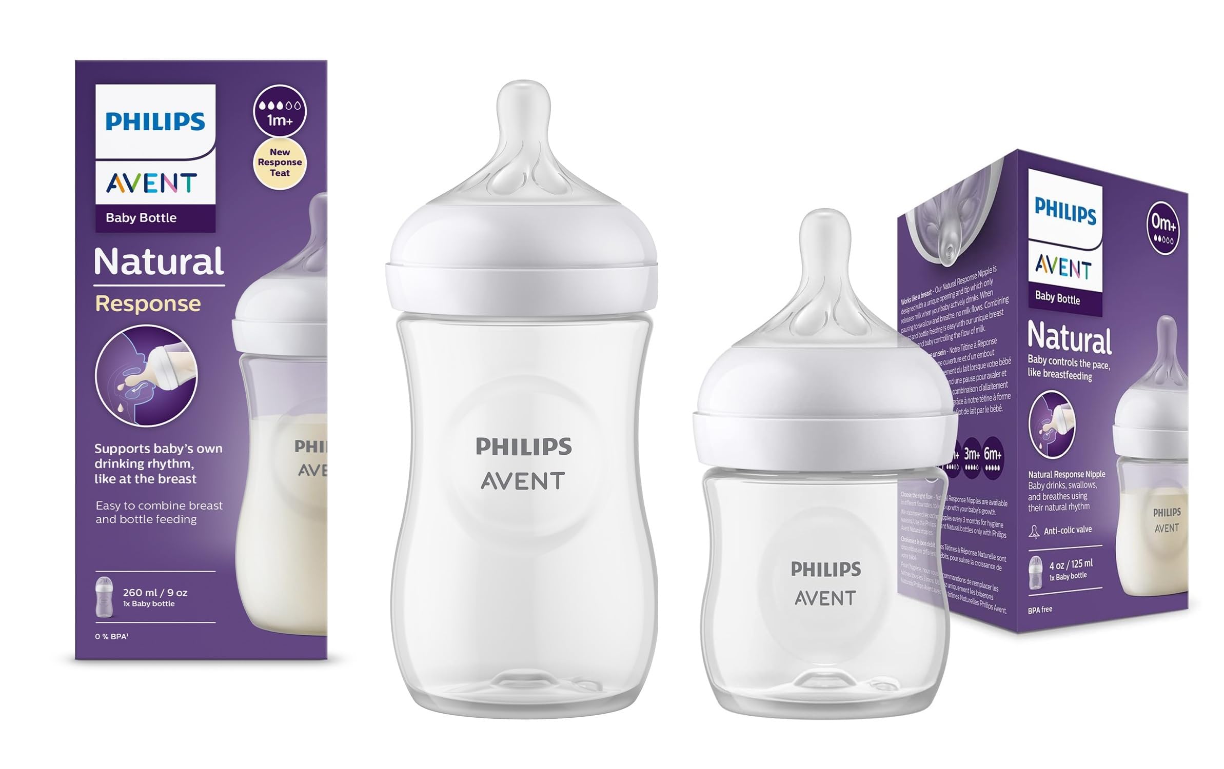 Philips Avent Natural Baby Feeding Bottle Combo| No.1 Brand Recommended by Moms Worldwide | Natural Response Technology Mimics Breastfeeding | Uniquely Designed Nipple releases milk only when baby drinks | Pack of 2 | SCY903/01 + SCY900/01