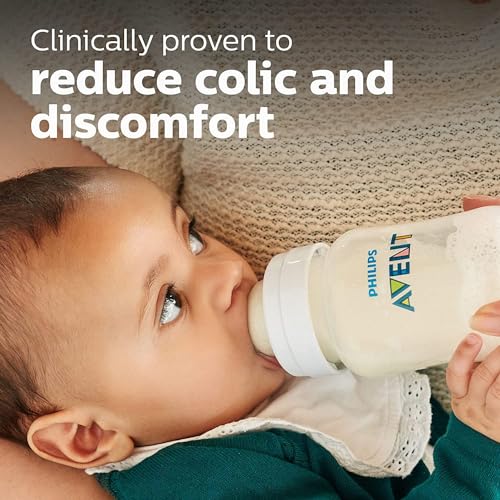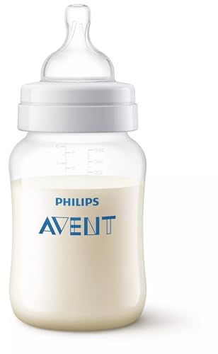 With its integrated Anti-colic valve air is vented into the bottle and away from the baby's tummy. Our clinically proven* Anti-colic valve is designed to reduce colic and gas. Clinical studies have shown that the Philips Avent bottle reduces colic and fussing. Fussing is significantly reduced at night as babies fed with Philips Avent Anti-colic bottles experienced 60 % less fussing than babies fed with a leading competitorâs vented bottle.* The nipple shape allows secure latch and the ribbed texture helps prevents collapse for uninterrupted comfortable feeding. Our Anti-colic bottle is designed to prevent leakage whilst feeding for a truly enjoyable feeding experience. With its wide neck and fewer parts our bottle is easier to assemble and to clean quickly and thoroughly. Philips Avent Anti-colic bottle is made of BPA free material (PP). Philips Avent Anti-colic nipples are available in different flow rates (0m+ 1m+ 3m+ & 6m+) to keep up with your babyâs growth. We recommend replacing nipples every 3 months for hygiene reasons. Use Philips Avent Anti-colic bottles only with Philips Avent Anti-colic nipples. Full Compatibility with Philips Avent Anti-colic bottle with or without AirFree vent. Includes 1 bottle. * At 2 weeks of age babies fed with a Philips Avent bottle showed less colic and significantly less fussing at night compared to babies fed with another leading bottle. * Nipple design proven to prevent nipple collapse and associated air ingestion and feeding interruptions.