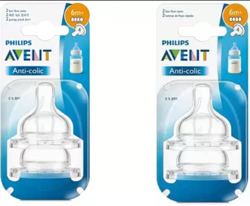 Philips Avent Anticolic Teats 6m+, Twin Pack , Fast Flow Teats Fast Flow Nipple (Pack of 4 Nipples)