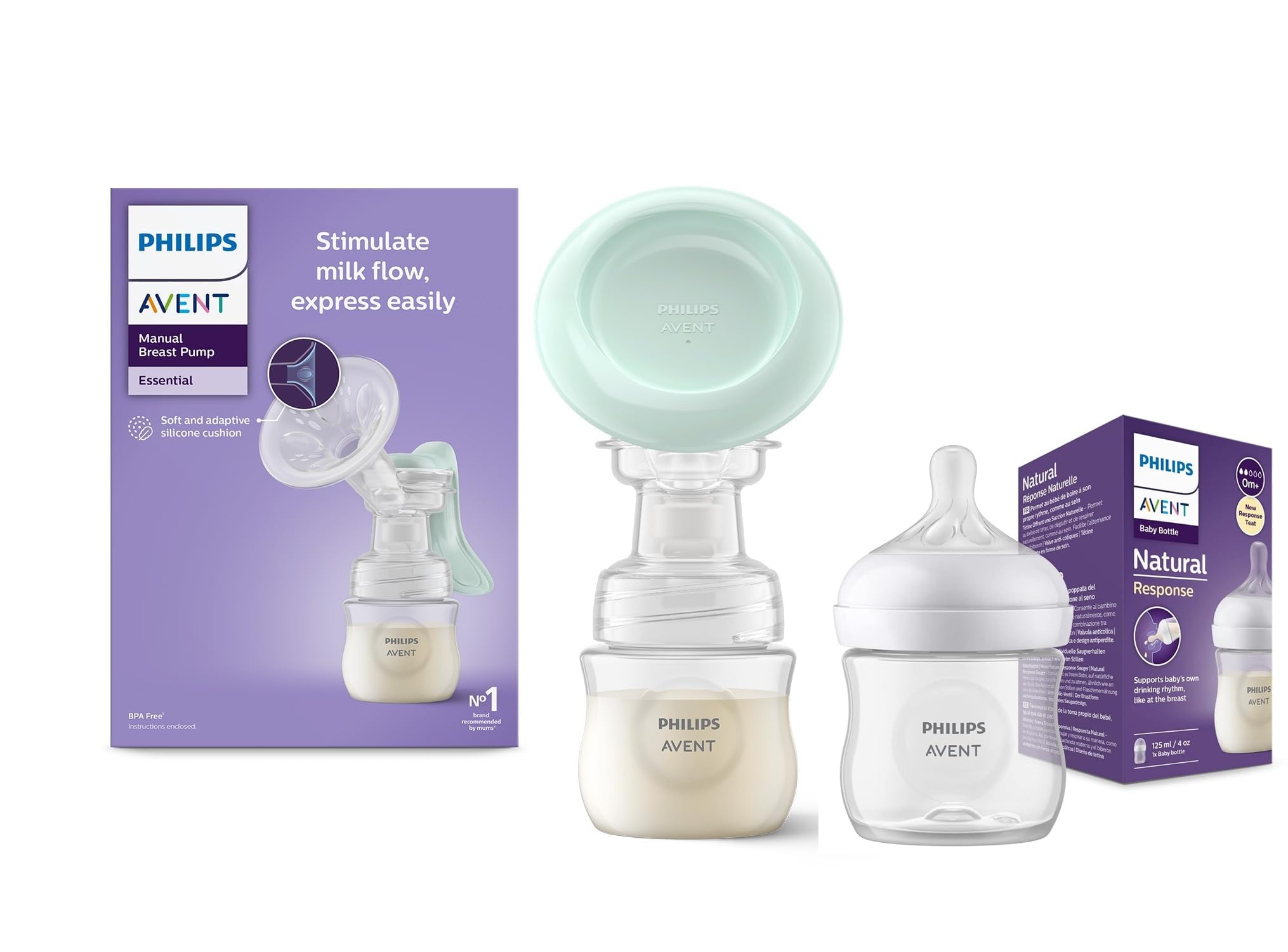 Philips Avent Comfort Manual Breast pump, Natural Motion technology, combines suction and nipple stimulation, soft cushion adapts to all size + 125ml Natural Feeding Bottle Combo(SCF430/01+SCY900/01) by Fratelli