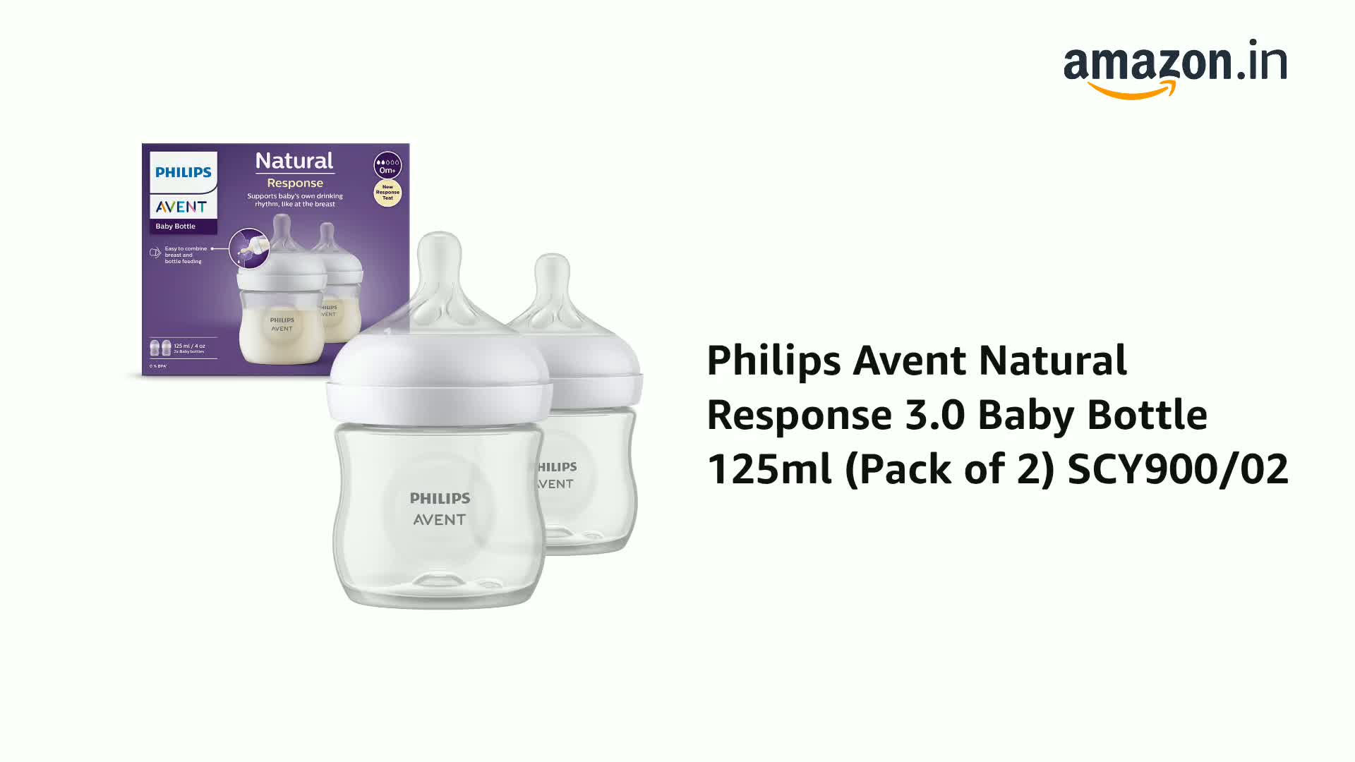 Philips Avent Natural Response 3.0 Baby Bottle 125ml (Pack of 2) SCY900/02