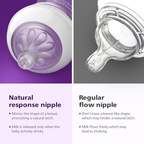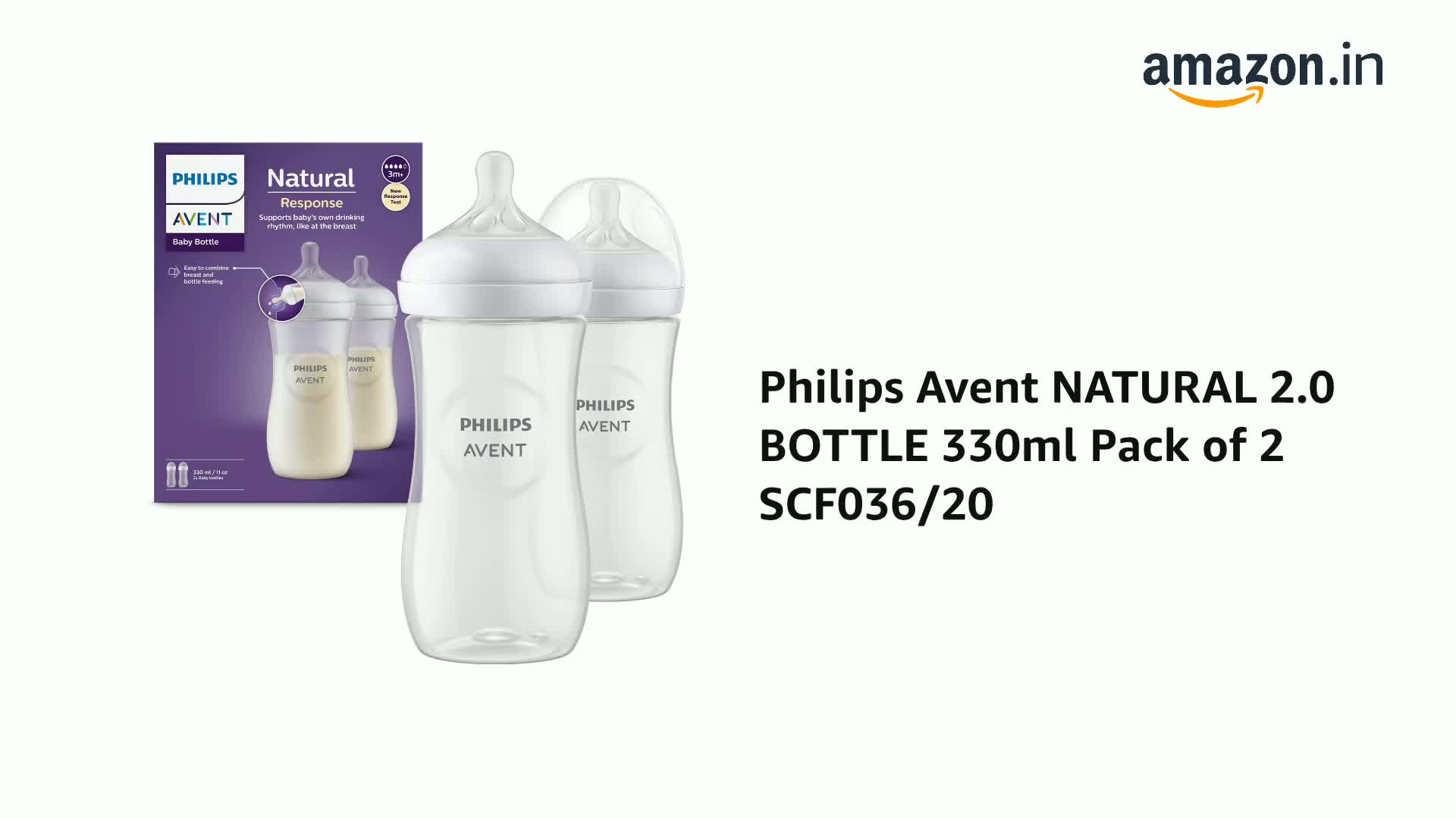 The wide breast-shaped teat promotes natural latch on similar to the breast making it easy for your baby to combine breast and bottle feeding. Its natural shape helps the baby to continue the same tongue movement used at the breast. Petals inside the teat increase softness and flexibility without teat collapse. Your baby will enjoy a more comfortable and contented feed. Innovative twin valve design reduces colic and discomfort by venting air into the bottle and not baby's tummy. This makes feeding comfortable for baby. Due to the unique shape the bottle is easy to hold and grip in any direction for maximum comfort even for baby's tiny hands. As a new parent your little one's health and well-being is your top-most priority. Rest assured you're giving baby the best--the Philips Avent Natural feeding bottle is made of BPA-free (following EU directive (2011/8/EU) material (polypropylene). Philips Avent products are compatible with one another and are easily interchangeable aiding the transition from your newborn to toddler. Bottles and teats can be used with the Philips Avent Comfort breast pump storage containers cups sterilizers and bottle warmer. The Natural feeding bottle is compatible with the majority of the Philips Avent range excluding the Classic bottles.