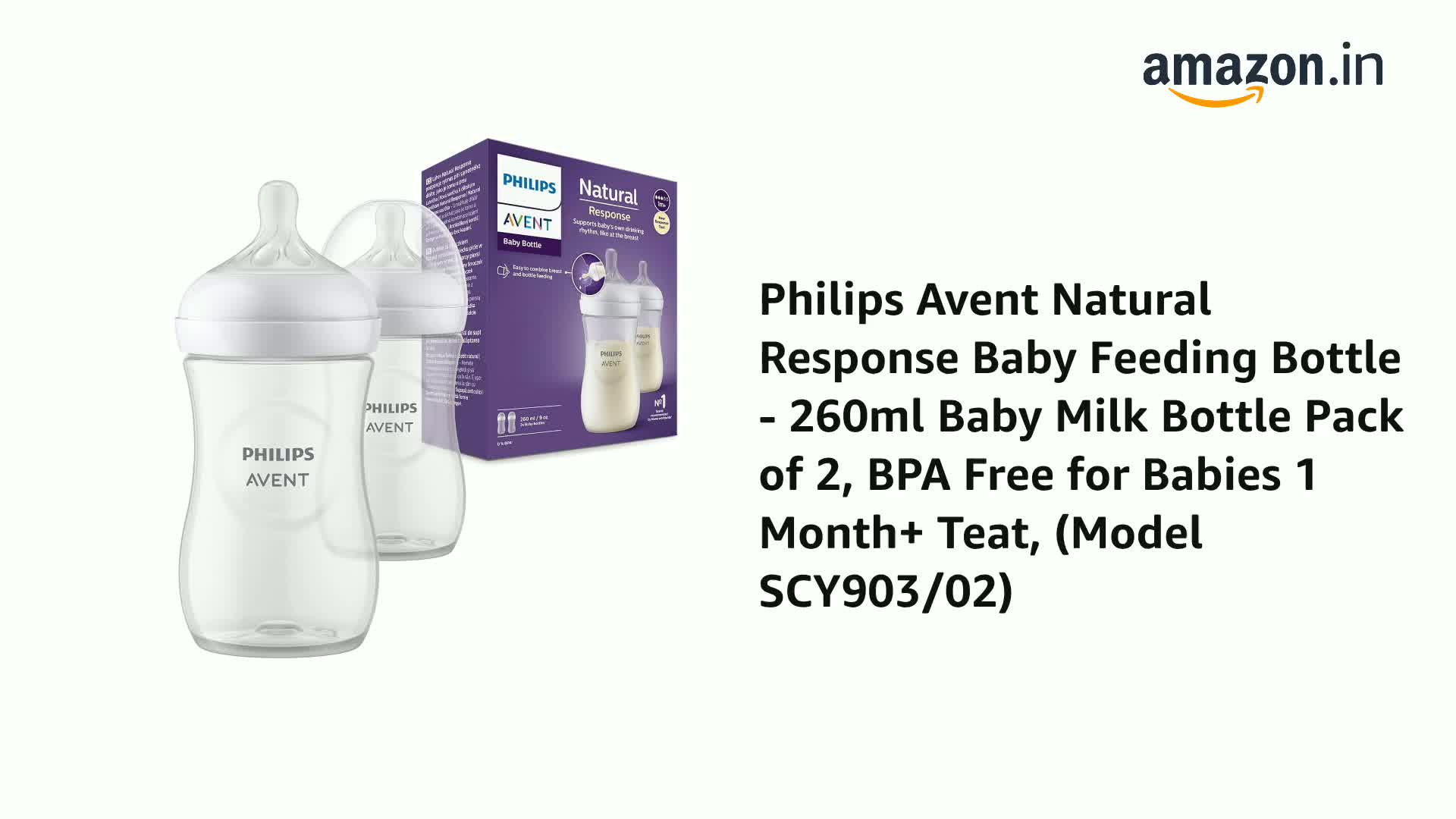 The wide breast shaped nipple promotes natural latch on similar to the breast making it easy for your baby to combine breast and bottle feeding. Petals inside the nipple increase softness and flexibility without nipple collapse. Your baby will enjoy a more comfortable and contented feed. Innovative twin valve designed to reduce colic and discomfort by venting air into the bottle and not babyâs tummy. Due to the unique shape the bottle is easy to hold and grip in any direction for maximum comfort even for baby's tiny hands. Wide bottle neck makes filling and cleaning easy. Only a few parts for quick and simple assembly. The Philips Avent Natural bottle is made of BPA free material (polypropylene).