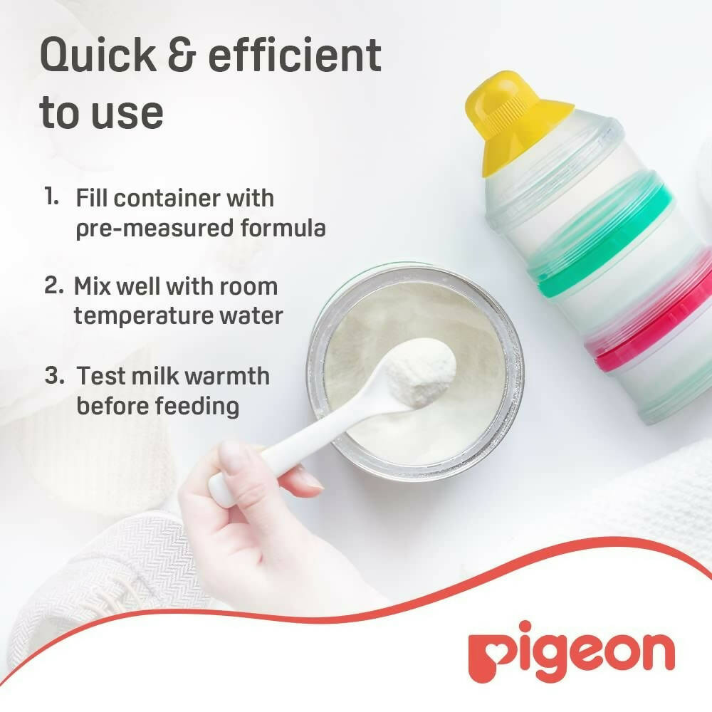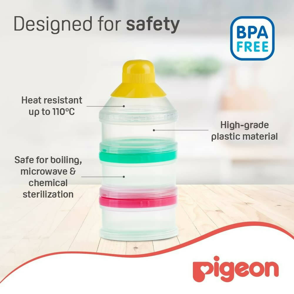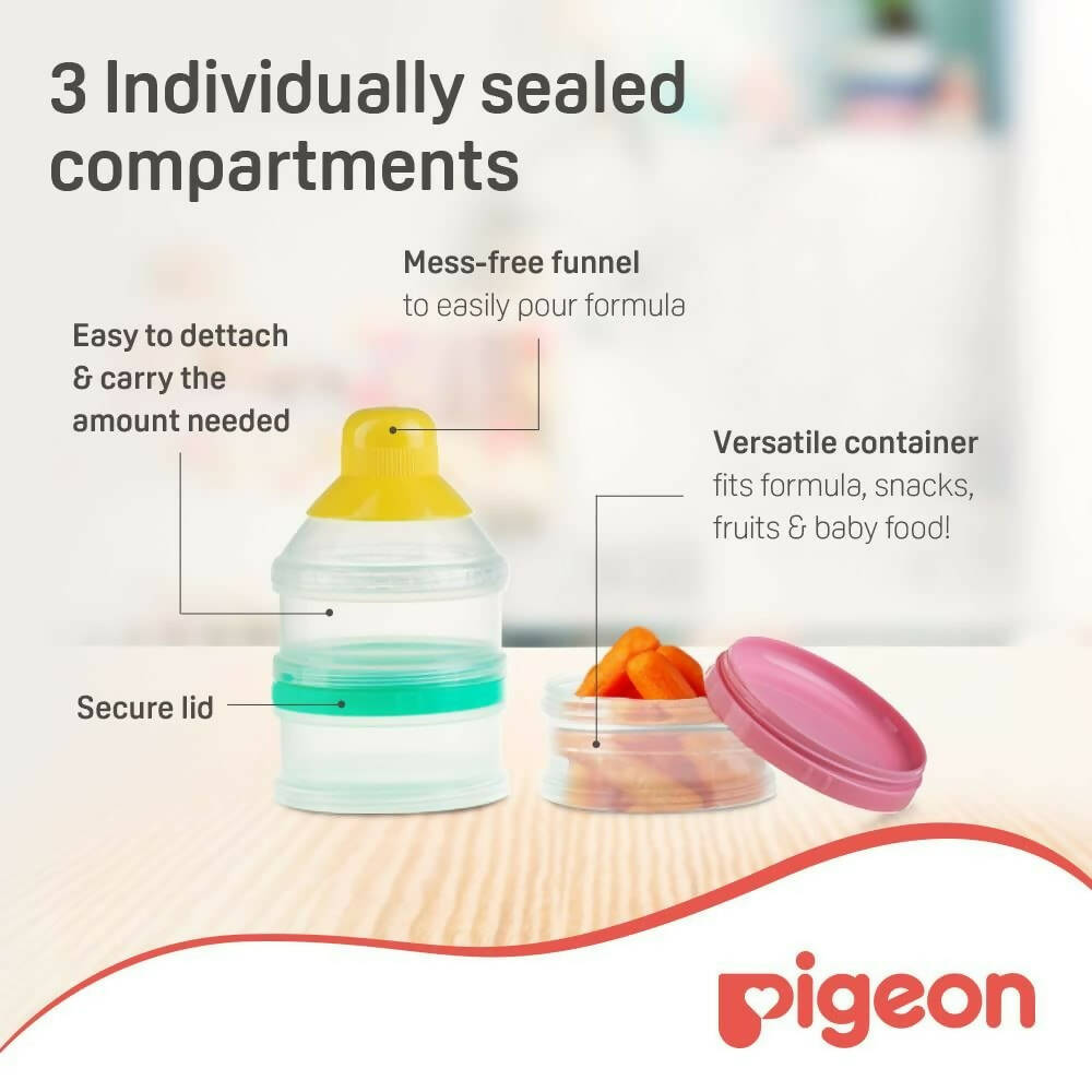 Pigeon Powder Milk ContainerAbout the Product:Pigeon Milk Powder Container comes with separte compartments which becomes hassle freeIn Pigeon Milk Powder Container each compartment is independently sealedPigeon Milk Powder Container ideal ideal for new mother for quick and easy accessTravel Friendly & BPA FreeEasy to store,Fits all bottle sizes and is suitable for warming milk and baby foodLegal Disclaimer: Product images are for illustrative purposes only. Images/packaging/ labels may vary from time to