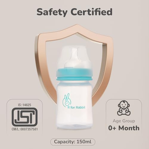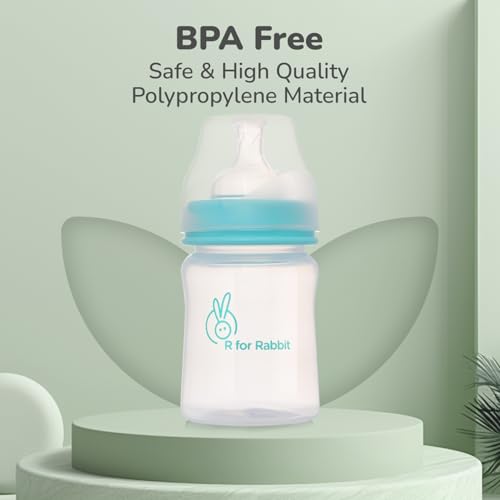R for Rabbit First Feed 150 ml Baby Feeding PP Bottle with Anti-Colic Wide Neck, BPA Free Soft Silicone Nipple, Milk Feeder for New Born/Infants/Toddler Kids of 0+ Months (Sea Green)