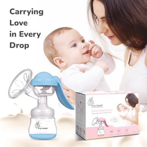 R for Rabbit First Feed Cozy Manual Breast Pump for Mothers with 2 Level Suction Adjustment, Soft and Gentle Silica Pad, Anti-Back Flow Compact Design, 1 Year Warranty (Blue)