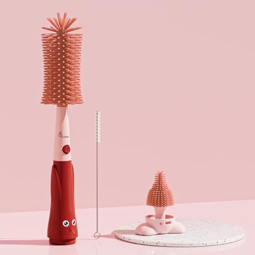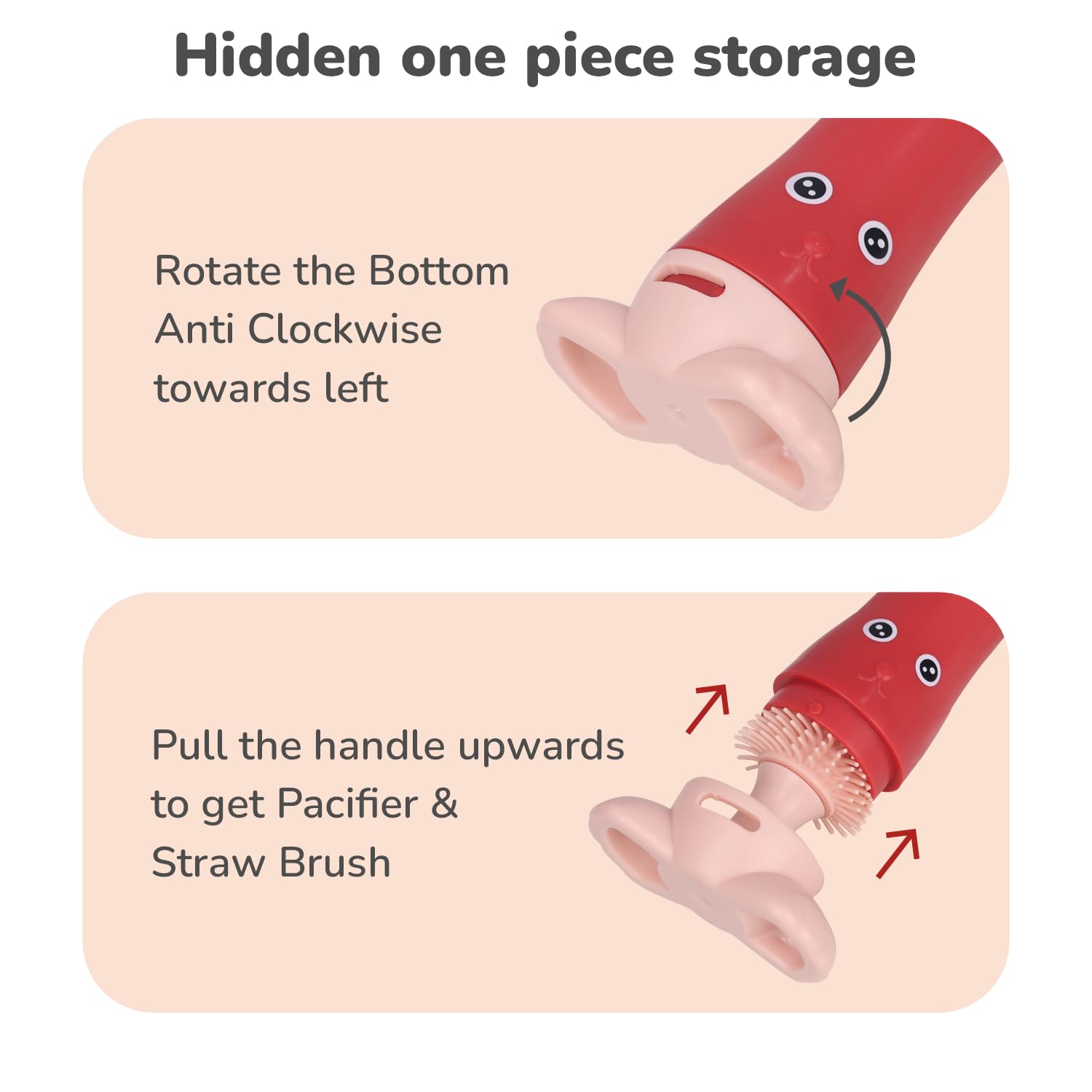 R for Rabbit Hygo Care Bunny 3-in-1 Cleaning Brushes for Baby Bottles, Straw & Nipple, BPA-Free Soft Silicone Bristles, Easy to Clean Bottles Corner, Hidden Storage & Adorable Design Cleaner (Red)