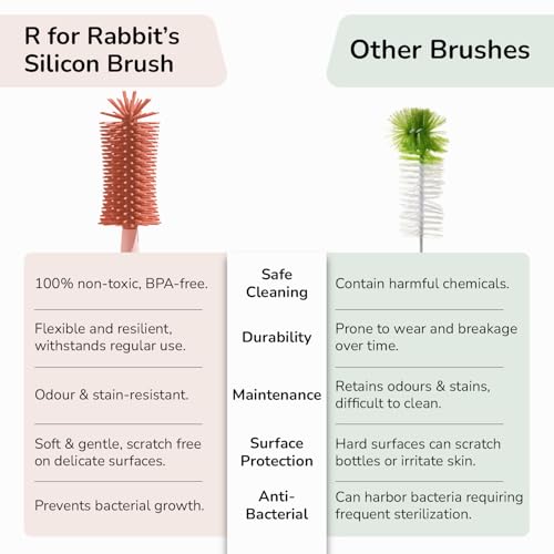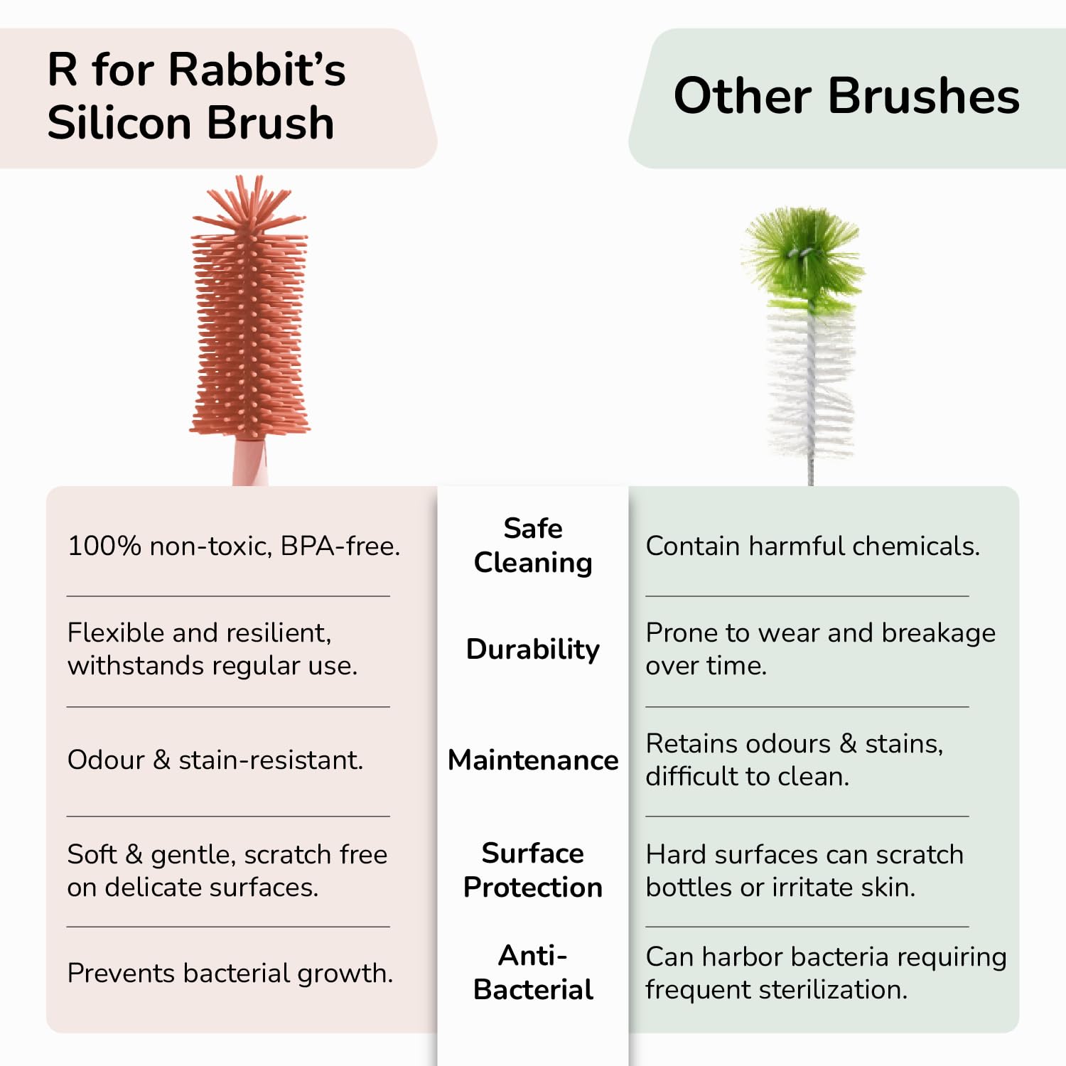• 3-in-1 Multipurpose: R for Rabbit’s Hygo Care Bunny encompasses: Bottle Brush: Perfect for cleaning baby bottles and delicate items with soft bristles Straw Brush: Made to clean bottle straws and other narrow openings. & Nipple Brush: Designed to thorou