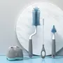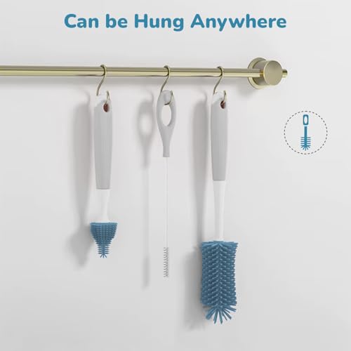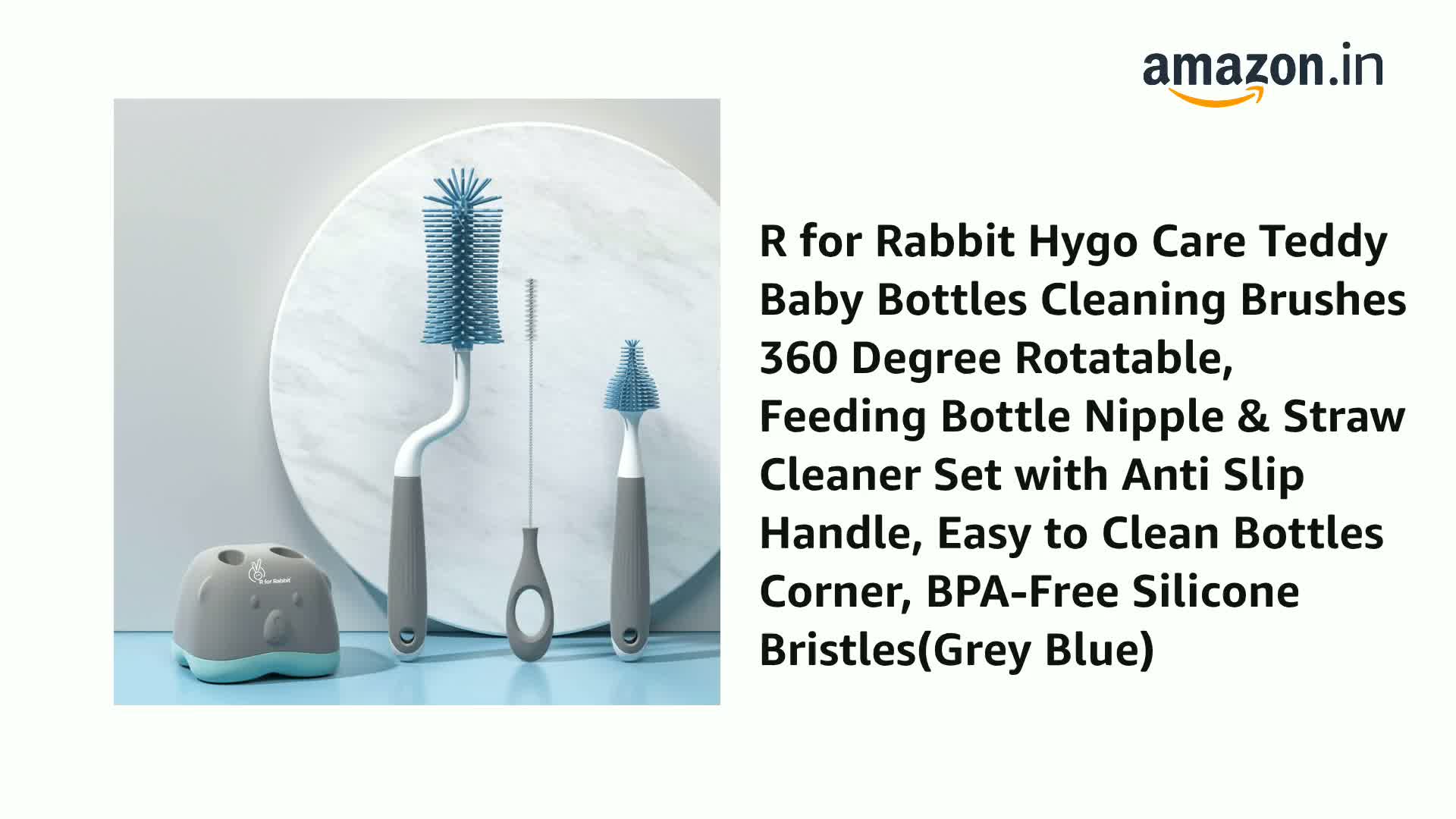 R for Rabbit Hygo Care Teddy Baby Bottles Cleaning Brushes 360 Degree Rotatable, Feeding Bottle Nipple & Straw Cleaner Set with Anti Slip Handle, Easy to Clean Bottles Corner, BPA-Free Silicone Bristles(Grey Blue)
