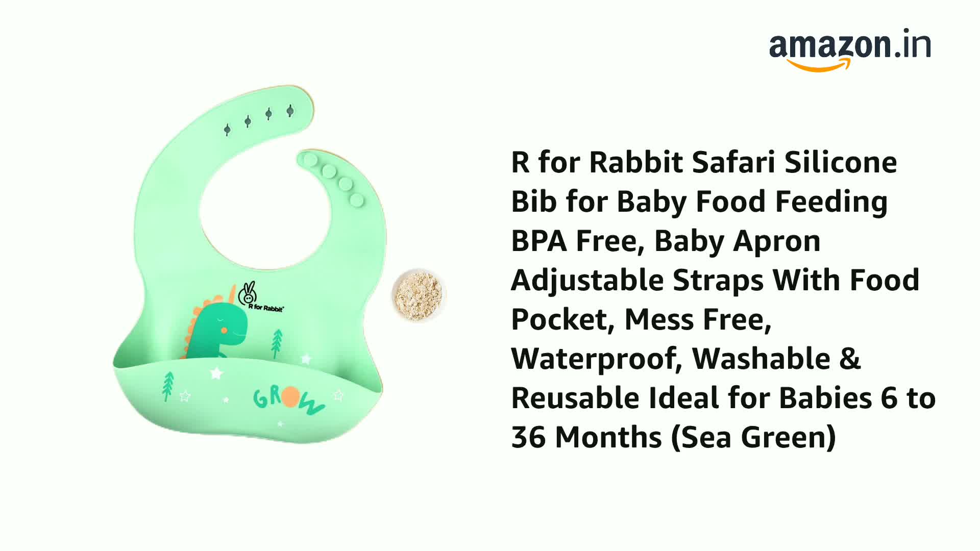 R for Rabbit Safari Silicone Bib for Baby Food Feeding BPA Free, Baby Apron Adjustable Straps With Food Pocket, Mess Free, Waterproof, Washable & Reusable Ideal for Babies 6 to 36 Months (Sea Green)