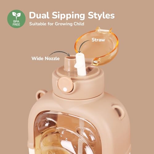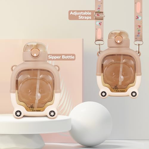 R for Rabbit Tritan Baloo Baby Water Sipper with Carry Strap for Kids | BPA Free Leak Proof Drinking Silicone Straw Sippy Cup for 12+ Months Baby Boy and Girl (1000 ml,Brown)