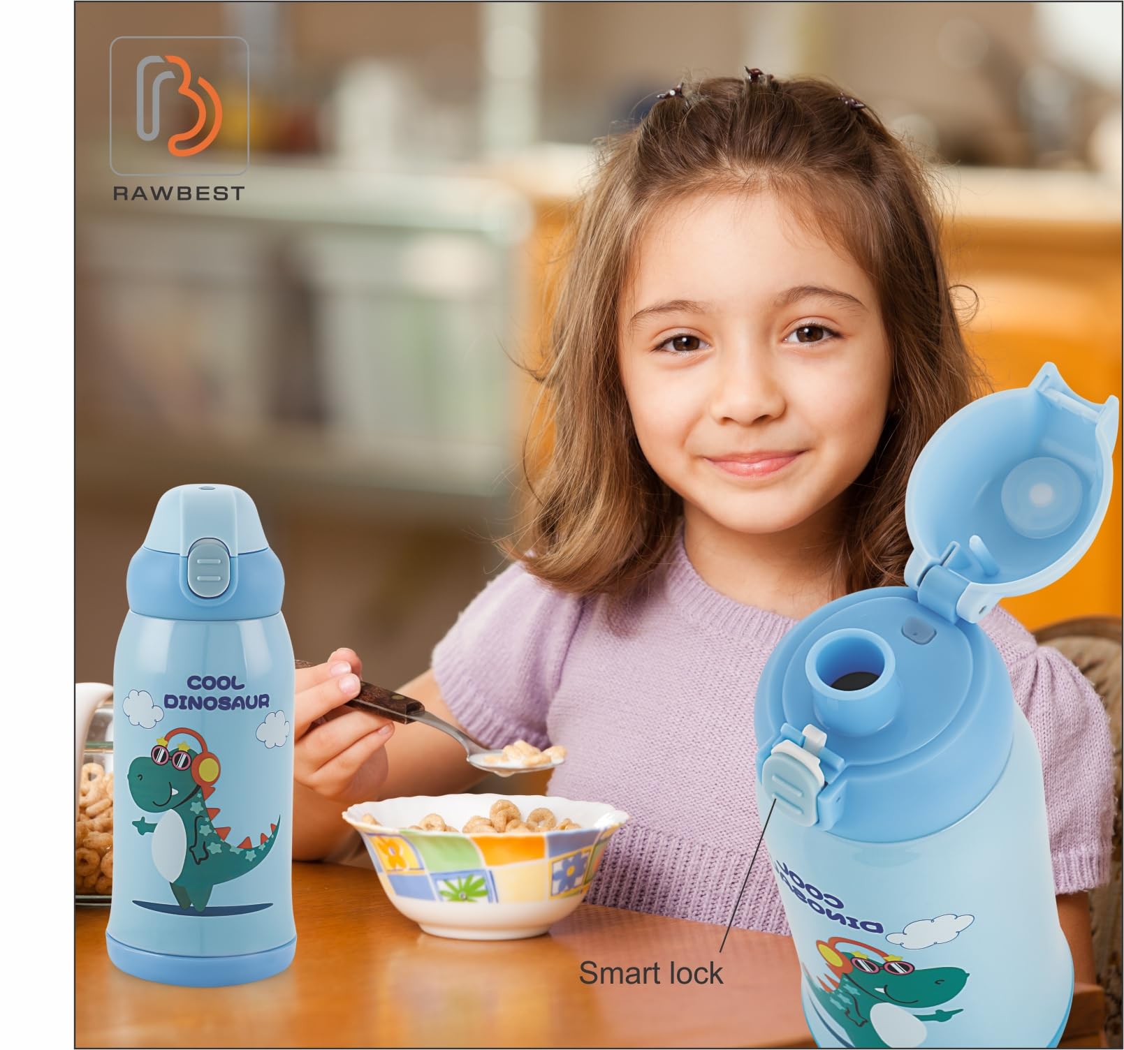 The Lid has a one touch button which is secured with lock.New spill-proof and anti-slip child-friendly design bottle shape with steel bottom.