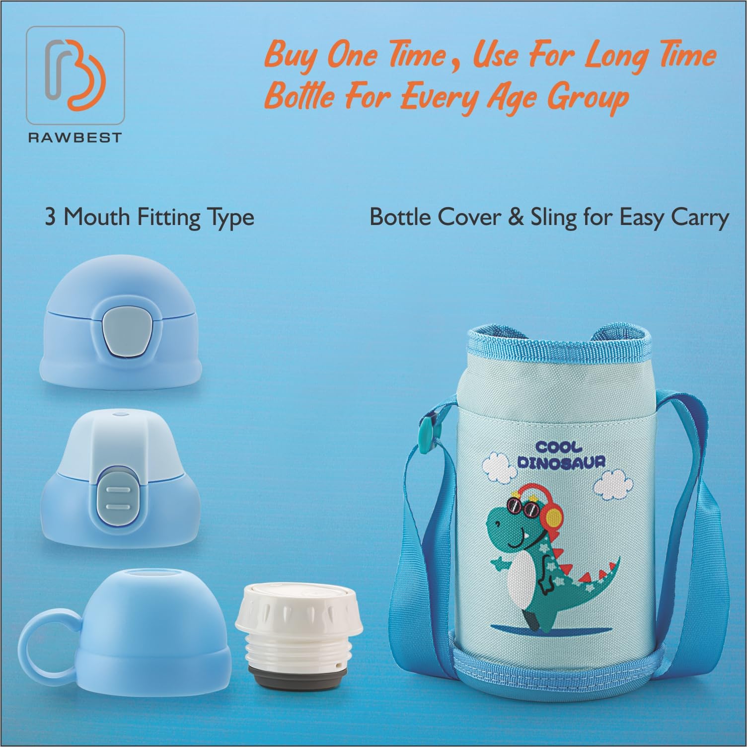 Package Contents: Rawbest Star Kid Surgical Inner Steel Kids Water Bottle 550 mlBlue