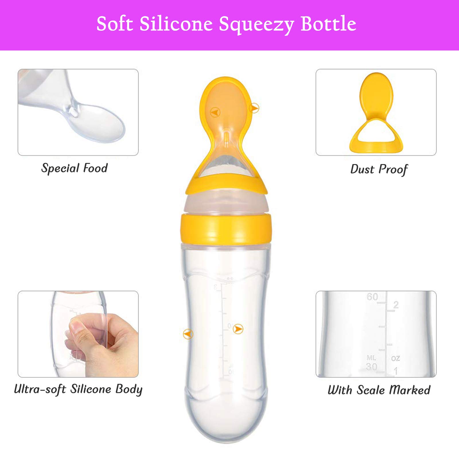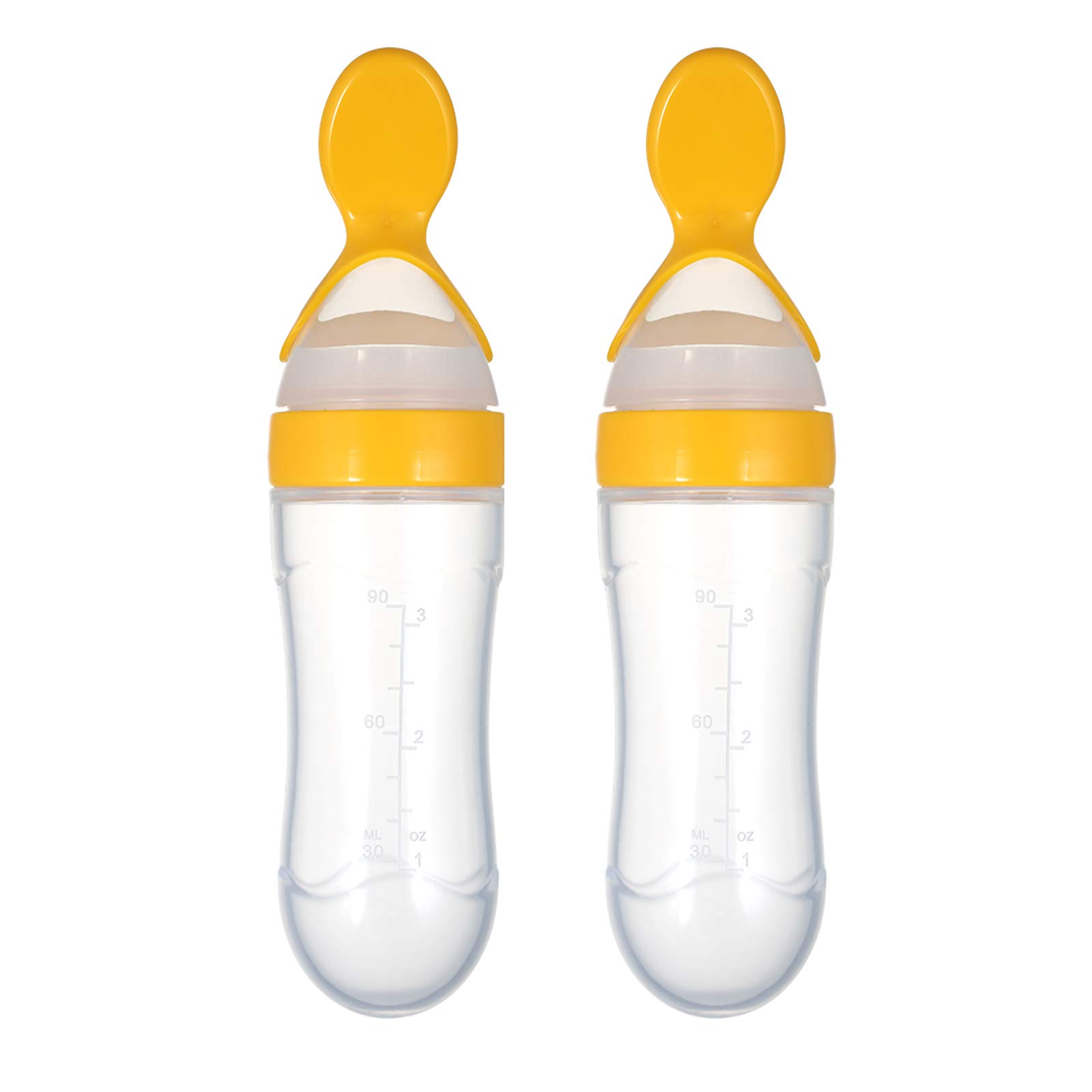 Safe-O-Kid 2 Easy Squeezy Silicone Food Feeder Feeder Spoon (Soft Tip) Bottle Yellow 90ml Pack of 2