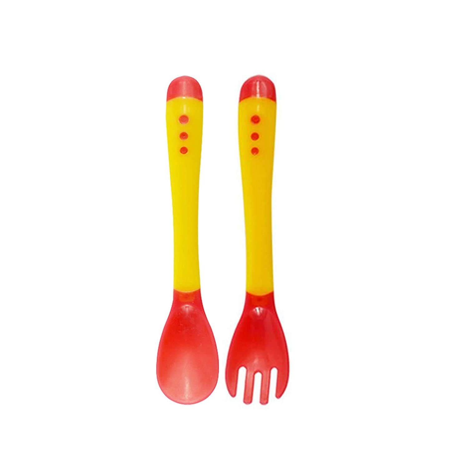 Safe-O-Kid - Extra Safe Heat Sensitive Spoon Fork Set Red & Yellow Pack of 1