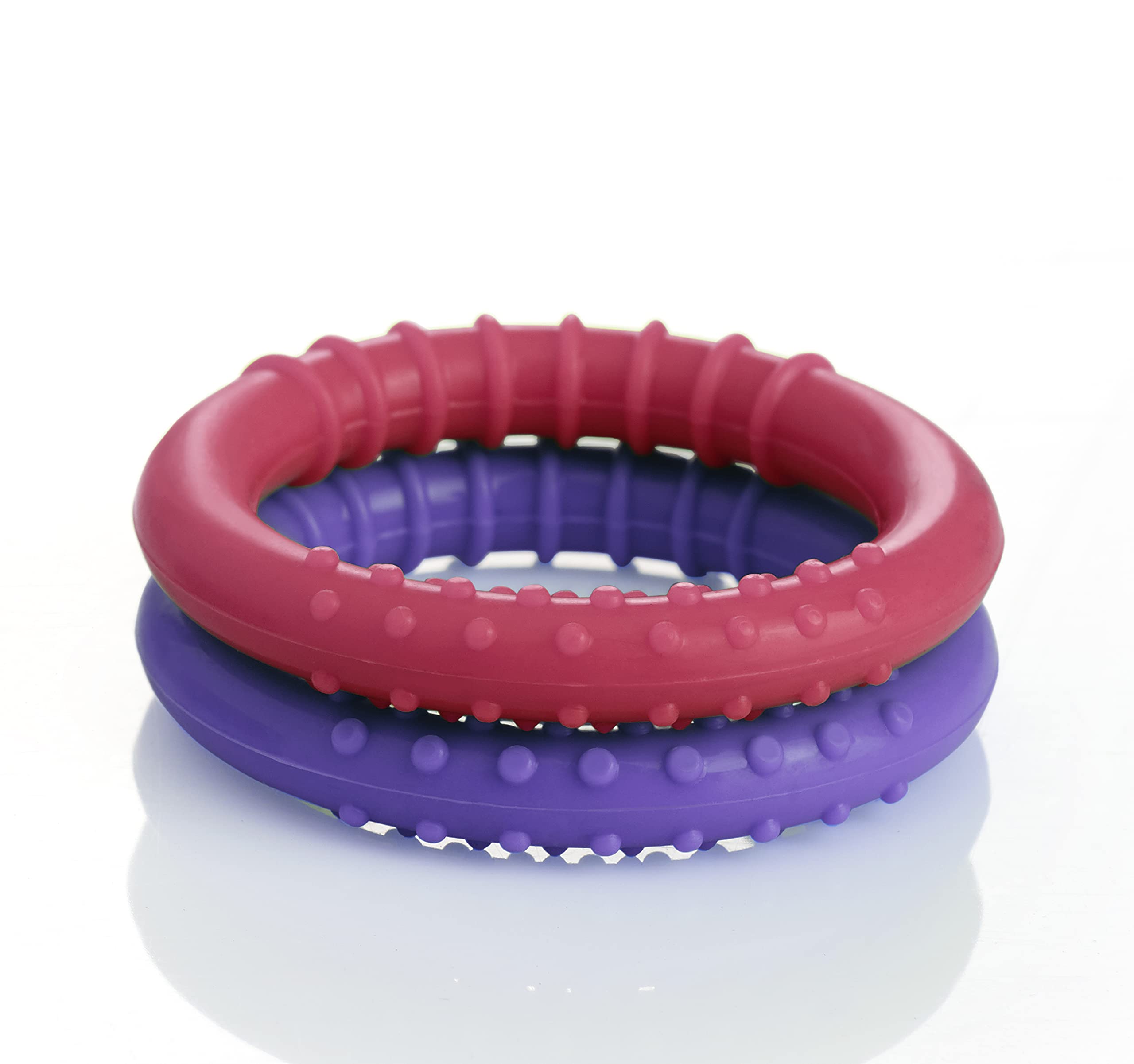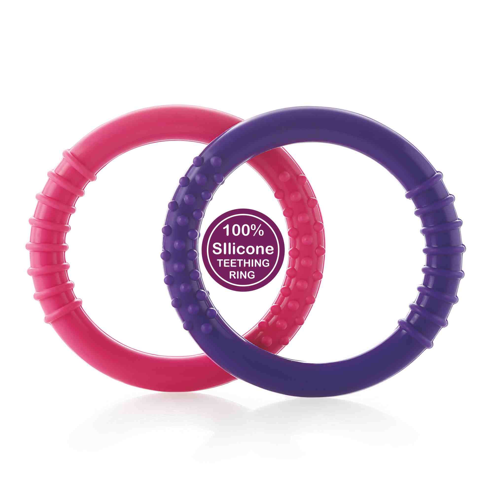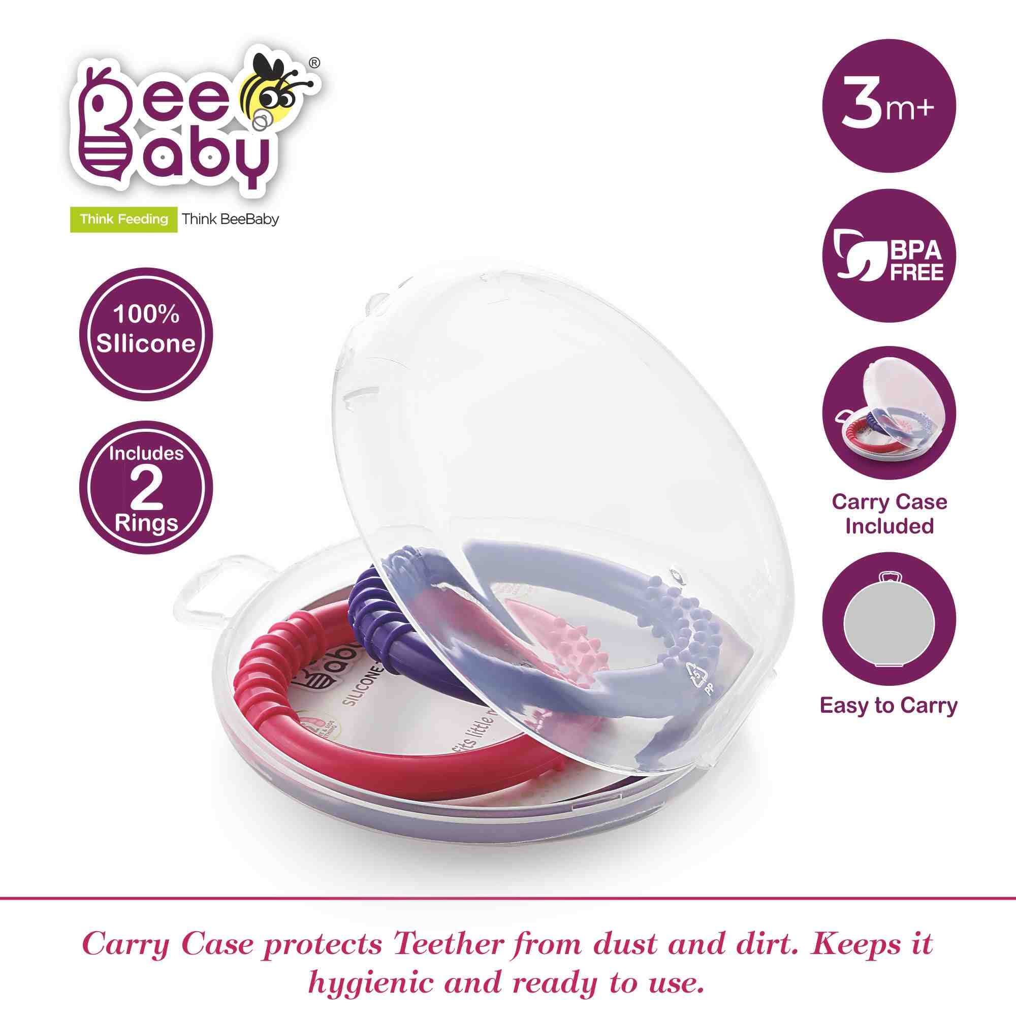 BeeBaby Loops Shape Soft Silicone Teether for 6 to 12 Months with Carry Case BPA Free Teething Toy for Babies with Textured Surface for Soothing Gums. 100% Food Grade (Loops - Pink_Violet) Pack of 2