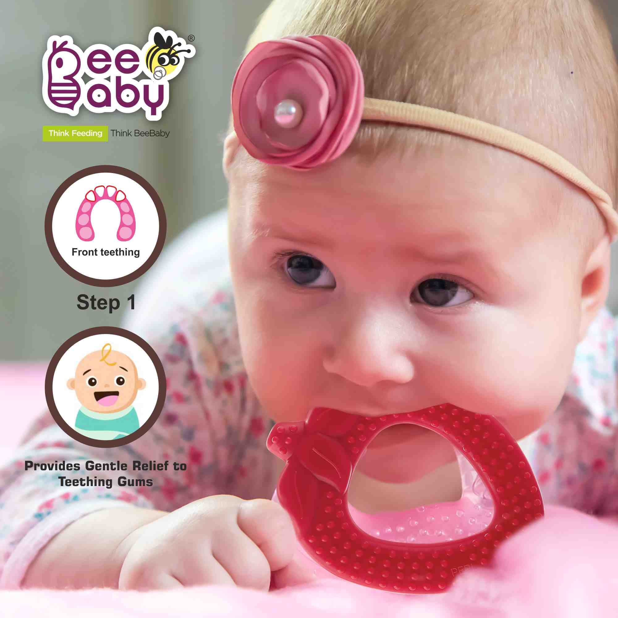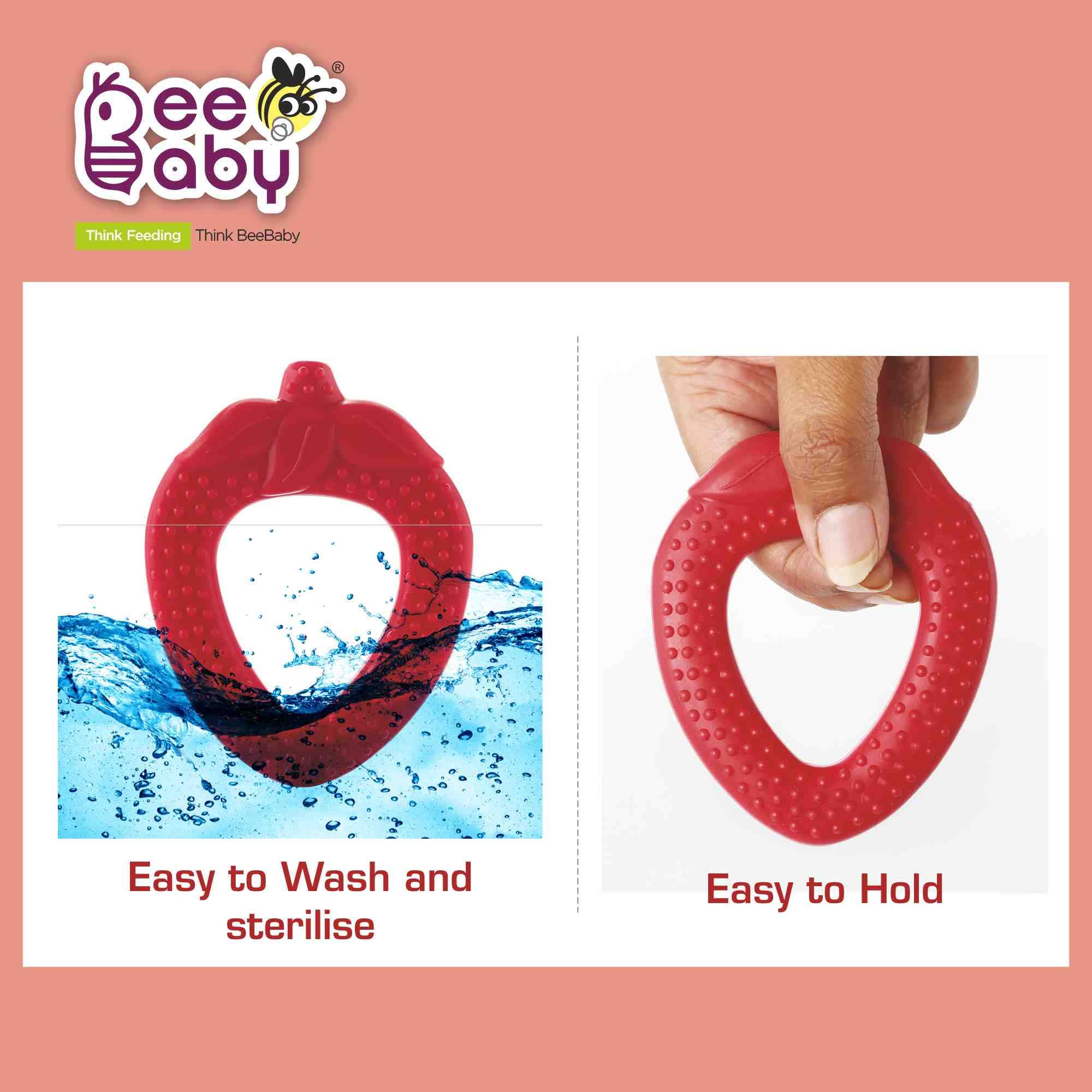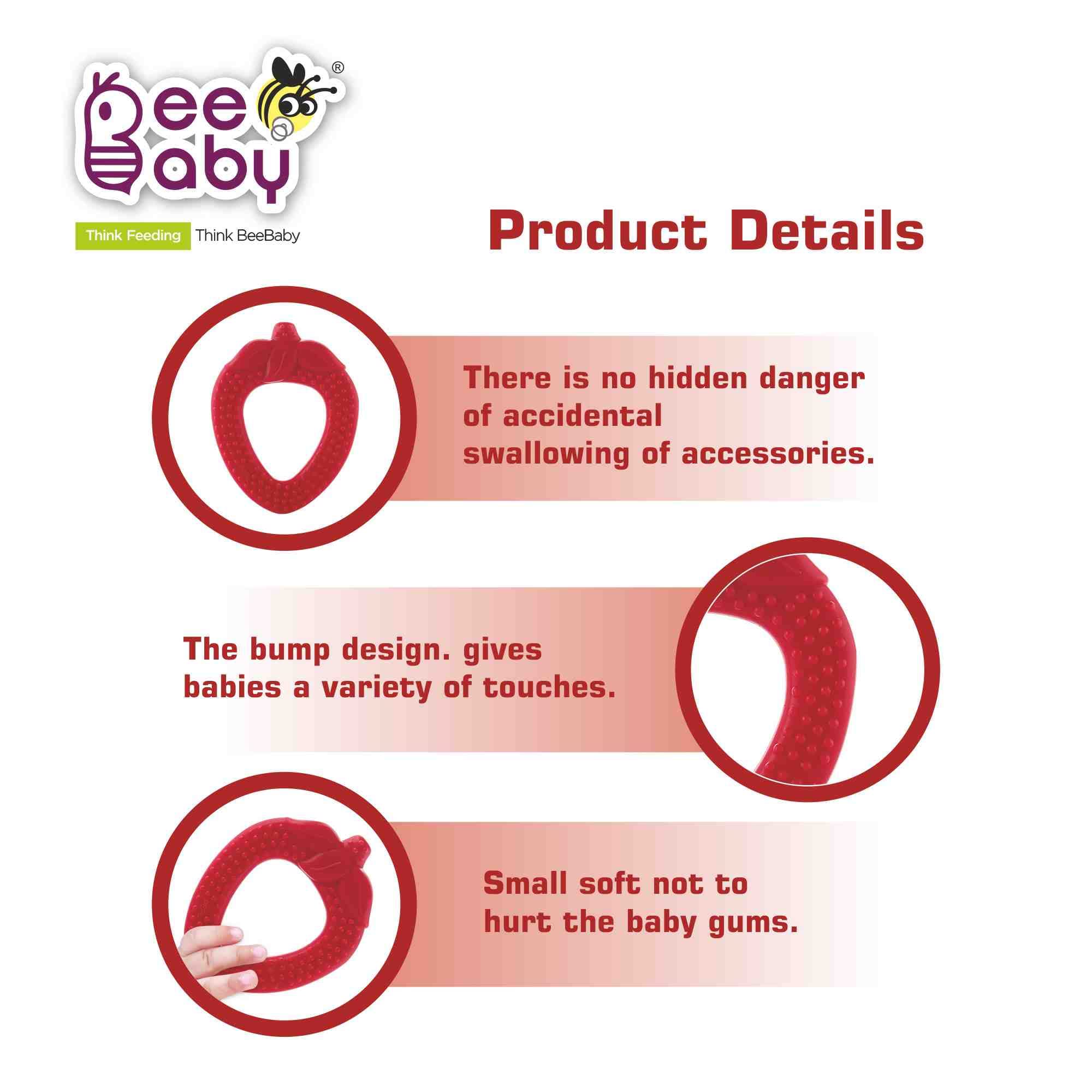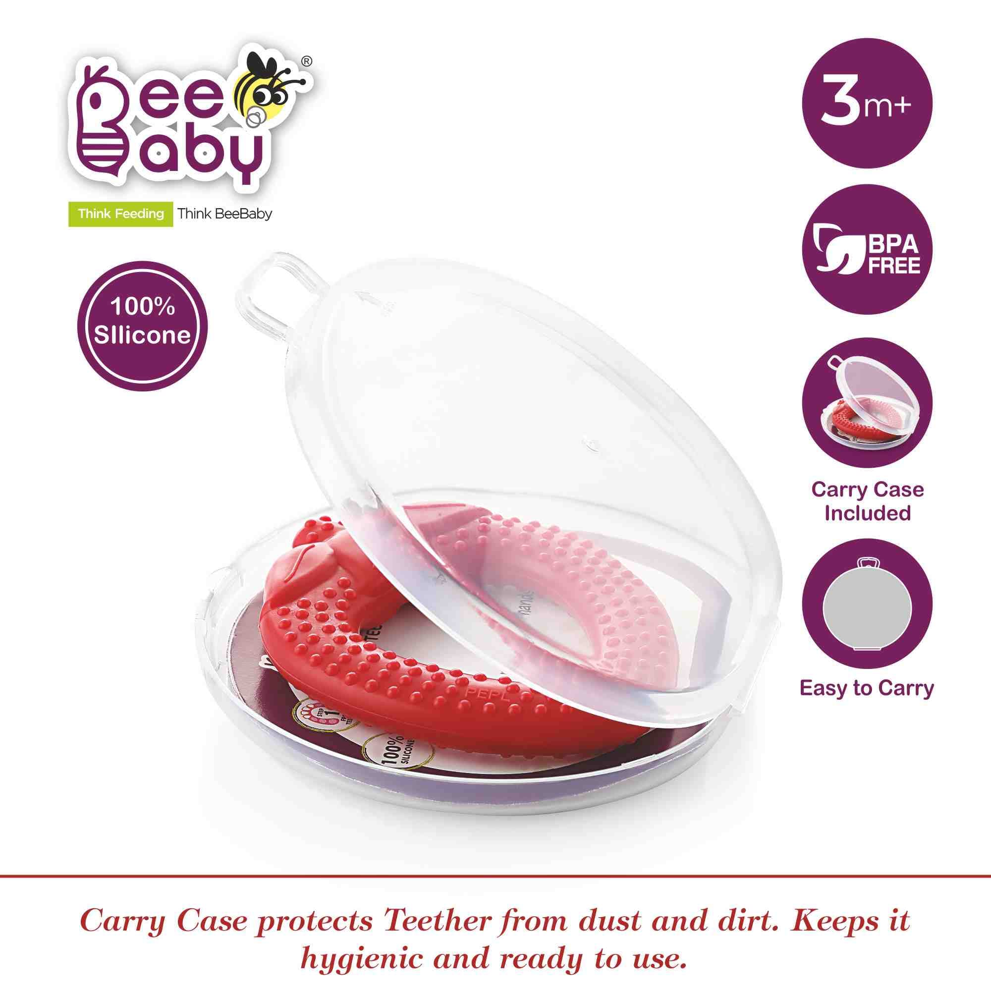 The soft flexible Silicone Teethers are made without BPA & PVC for baby's health and well-being. They have multiple textures and are perfectly sized to help soothe gums during teething. They are easy to hold and baby will love the fun bright colors and fruit shapes!. Comes with Carrying or Protective case which helpful while travelling and also allows teether to be dust free always.