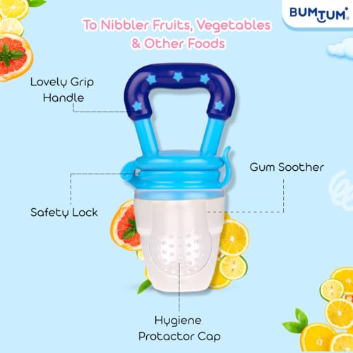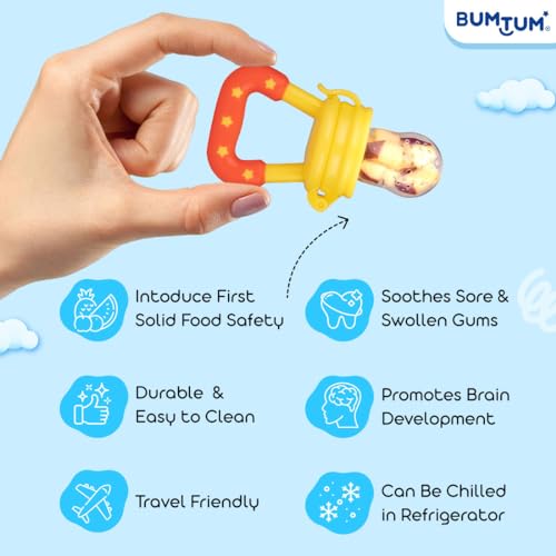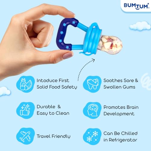 BUMTUM Baby Food & Fruit Nibbler with Extra Mesh| Soft Pacifier/Feeder Teether for Babies Infant| BPA Free| Baby Fruit Nibbler Combo (2 Pcs.)