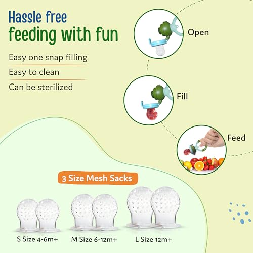 LuvLap Baby food and fruit feeder twin packs are availble in attractive colors ergonomic designs and makes baby's introduction to solid food and feeding to weaning babies an easiser job. The pack contains 3 different sizes of feeder sack to meet the growing consumption need of the babies