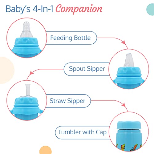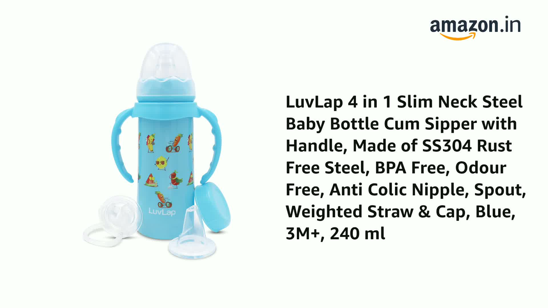 LuvLap 4 in 1 Steel Feeding bottles cum Sippers are ideal for a baby's consumption of mother's milk formula feed Juice and other liquids. The body of the sipper is made of rust-free SS304 steel. It is odor free also. The liquid in the sipper can be consumed through the nipple spout or Straw. All these come with an anti-colic venting system. Moreover he/she can sip from it directly once they are trained to sip from a tumbler.