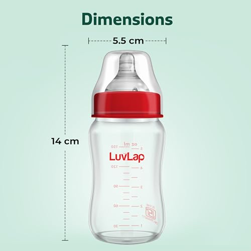 LuvLap Natura Flo Wide Neck glass bottles are manufactured especially for feeding newborns and small children. The bottle has a broad neck a screw-on lid that secures a silicone nipple that lets the infant sip from it just like it would from a breast. In particular for moms who are returning to work or who find it difficult to breastfeed the bottle is frequently utilized as an addition to or a substitute for nursing. Glass bottles are simpler to clean don't retain flavors residues or odours and are more dependable and long-lasting.