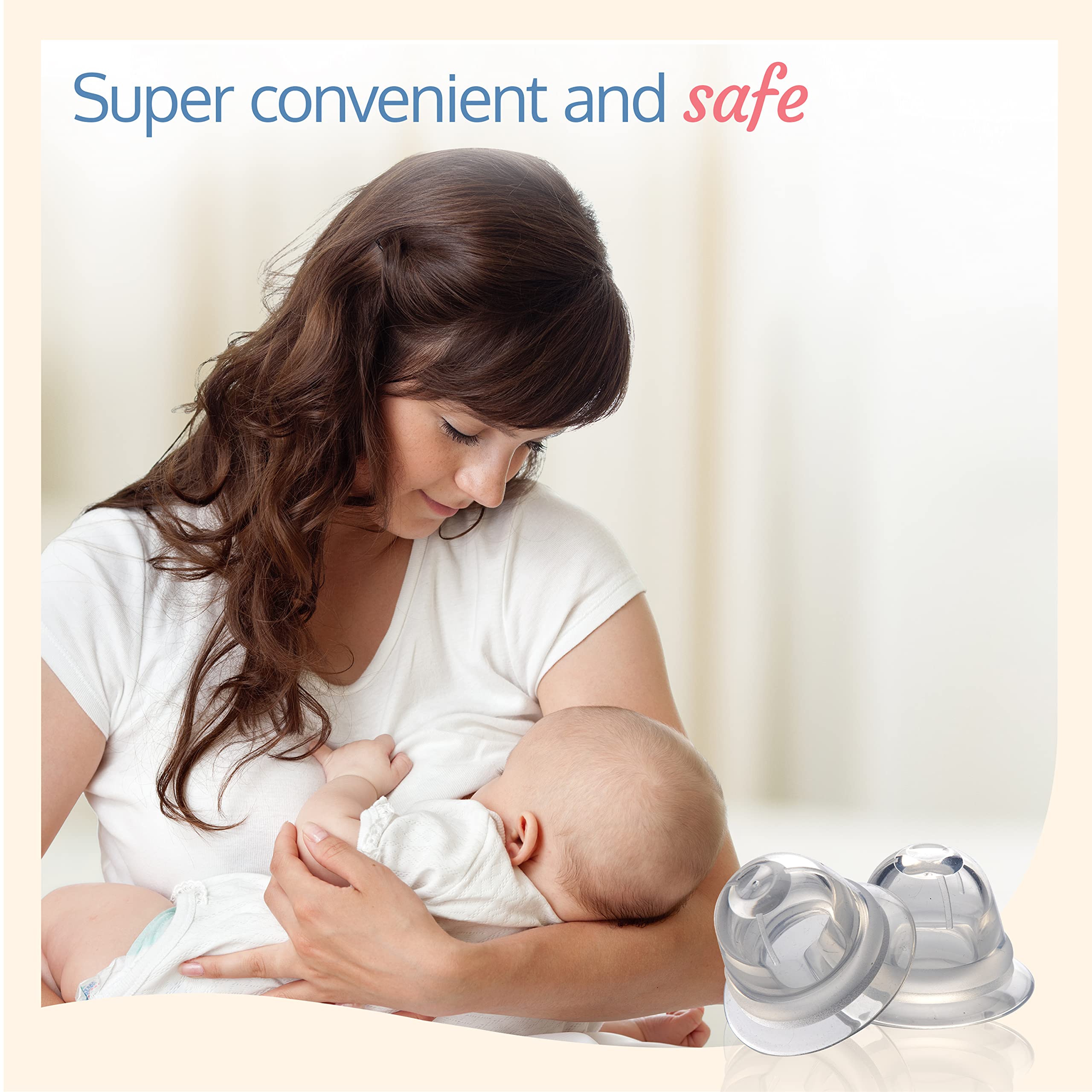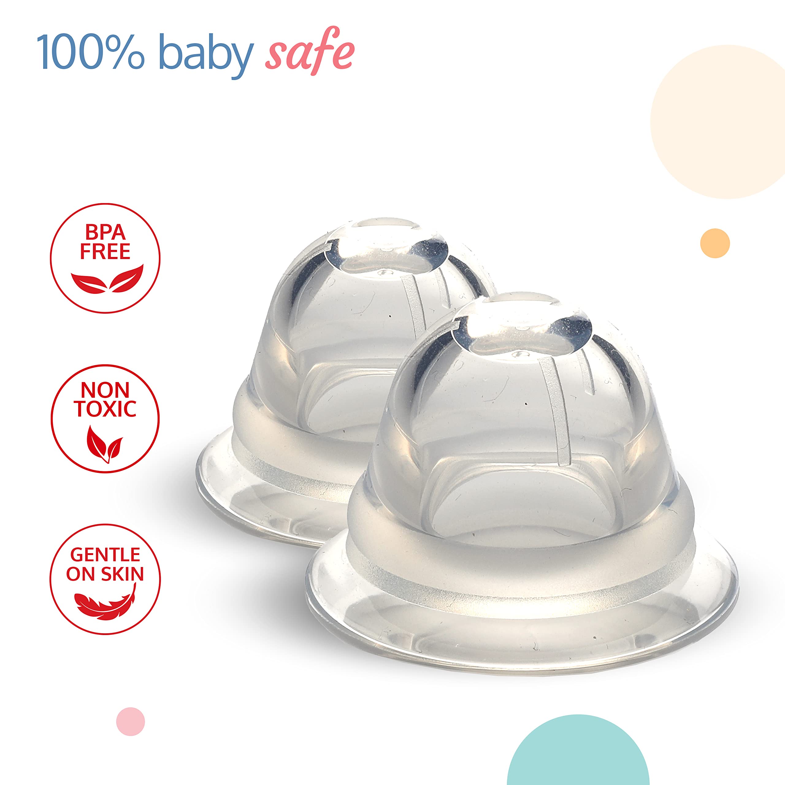 Nipple puller helps to draw out inverted nipples making it easier for baby to latch on. It gently draws out inverted or flat nipples making it easier for babys mouth to create contact and suckle on. Made with 100 percent soft silicone it works without causing any pain. Nipples may stay protruding for up to a couple of hours. You may need to use the puller every time before feeding the baby.