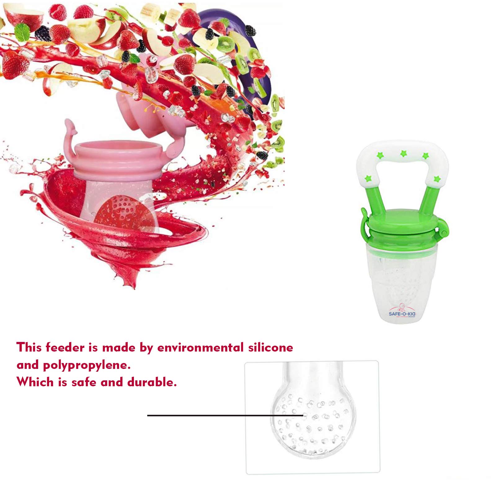 Safe-O-Kid- Pack of 1- BPA Free; Veggie Feed Nibbler; Fruit Nibbler/Silicone Food; Soft Pacifier/Feeder for Baby (M Size for 6-9 Months Babies)- Green