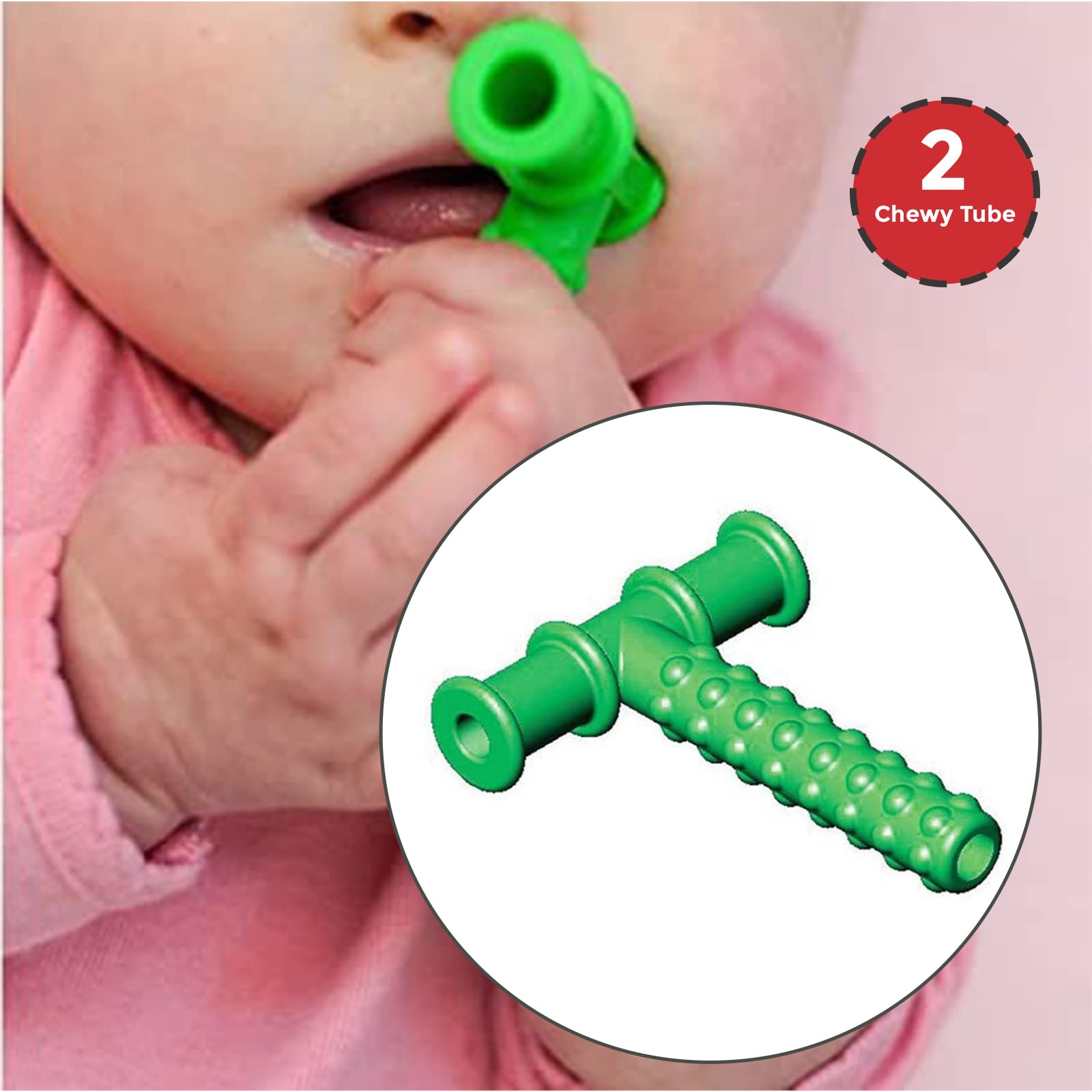 Safe O Kid Texture Chewy Tube/Teether Develop Baby's Biting Skills Safely Texture Chewy Tube for Toddler 6 to 36 Months Green Pack of 2