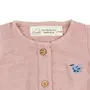 Natural coconut shell buttonsHand-embroidered motifExtra-long front opening so it's easier to put on your babySnap buttons at the bottom for fuss-free diaper changesGets softer with every wash so wear it more often!