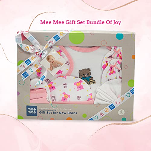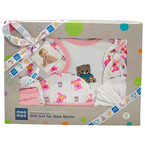 HomeBabyKids FashionBoy FashionMee Mee New Born Baby Gift Set | Soft Cotton Clothing Essentials for Infants/Baby Girls, Boys | Baby Shower Clothing Hamper (5 Pieces, Pink)| Ideal Gift for New Born Baby