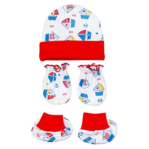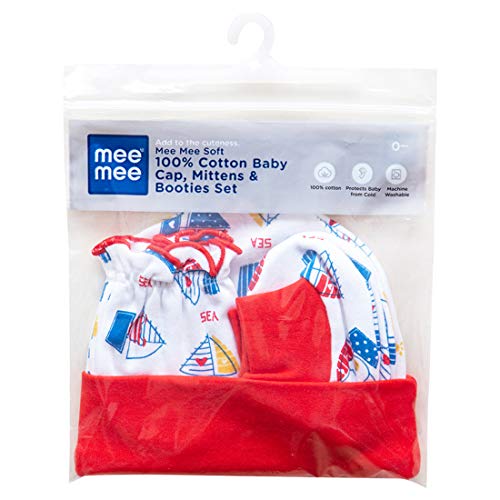 Mee Mee Soft Cotton Baby Cap, Mittens & Booties Set (Blue)