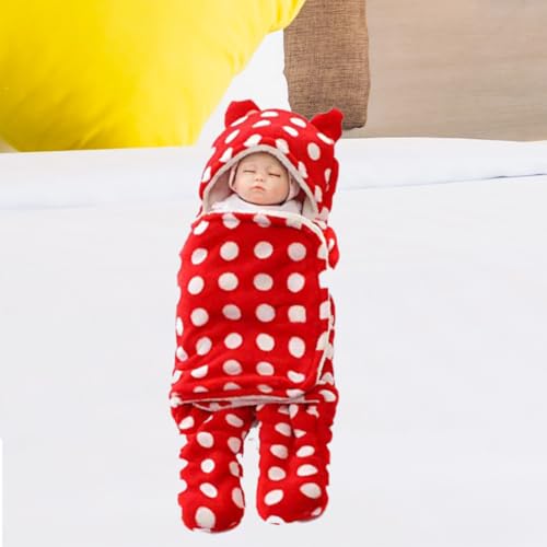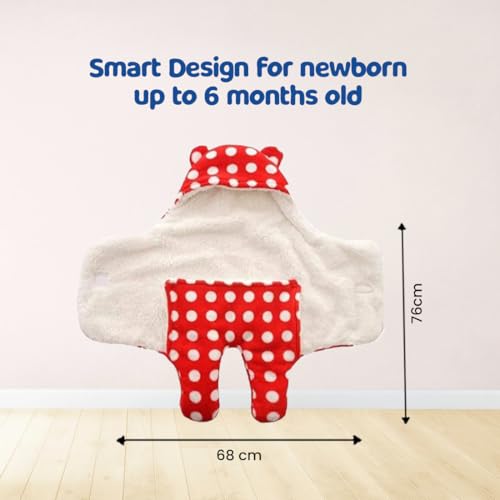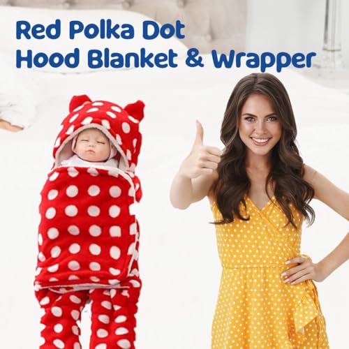 Bumtum 3-in-1 Hooded Baby Soft Blanket Wrapper| Swaddle for New Born Babies(Boys & Girls) 0-6 Months, Travel-Friendly, Polka Dot Design (Red)