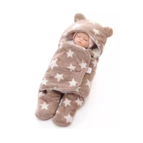 Bumtum 3-in-1 Hooded Baby Soft Blanket Wrapper| Swaddle for New Born Babies(Boys & Girls) 0-6 Months Travel-Friendly Star Printed (Biege)